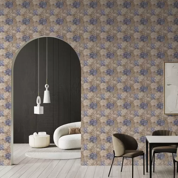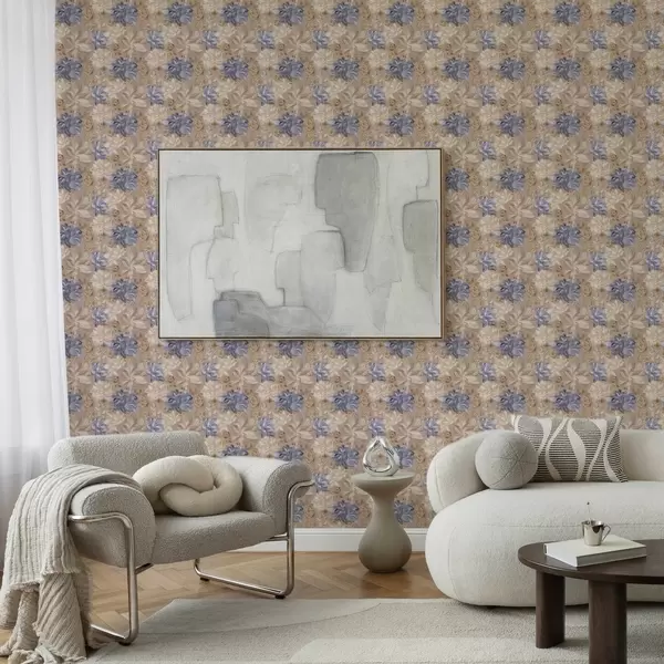 Тапет Пъстри кремави и сини цветя в пастелна палитра Nr. a00634