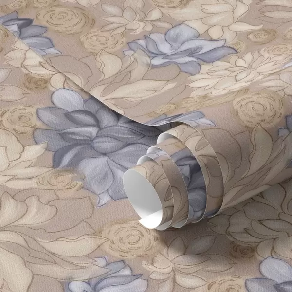 Тапет Крем и сини цветя на топъл бежов фон Nr. a00634v1