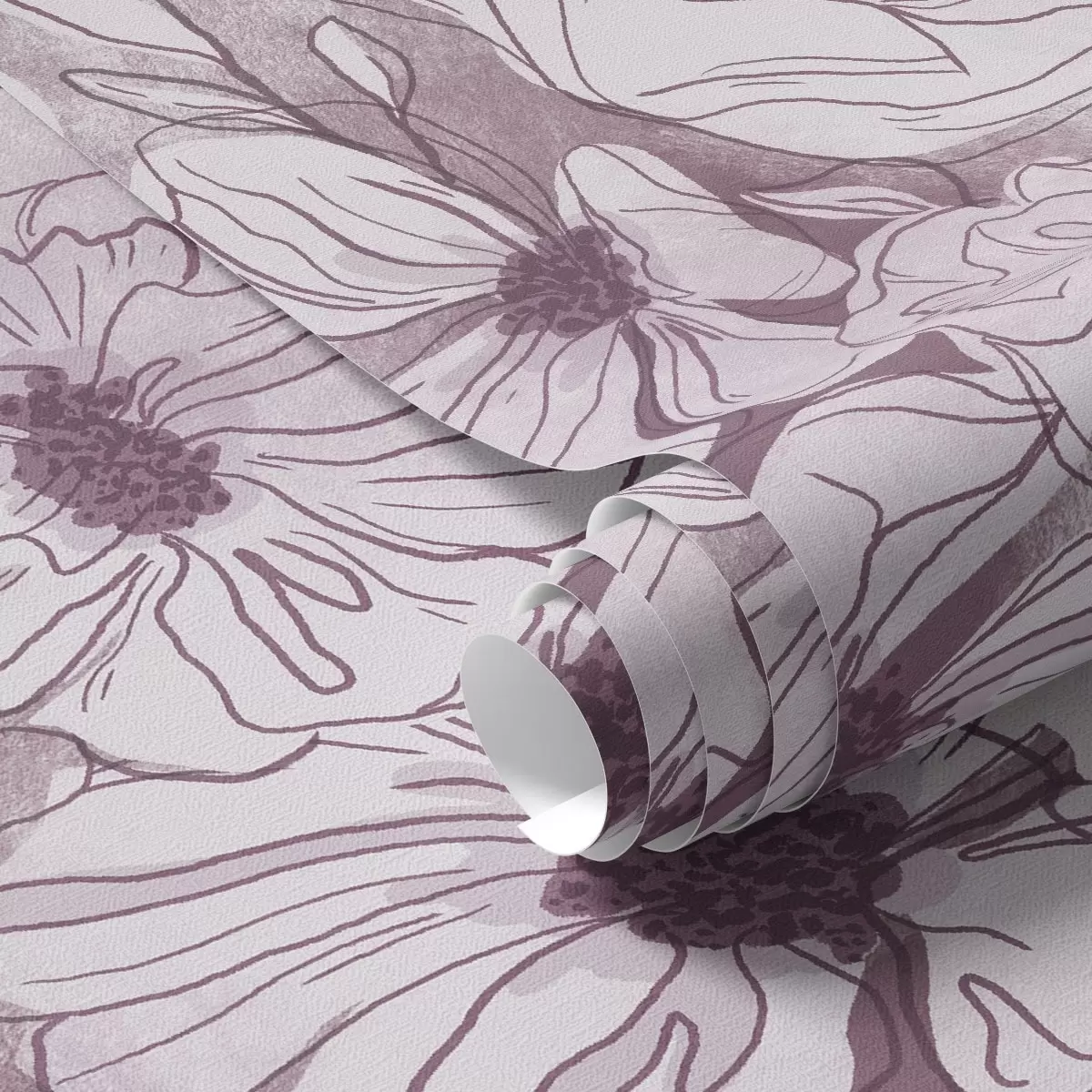 Тапет Линейни цветя в прохладна лилаво-розова палитра Nr. a00636v1