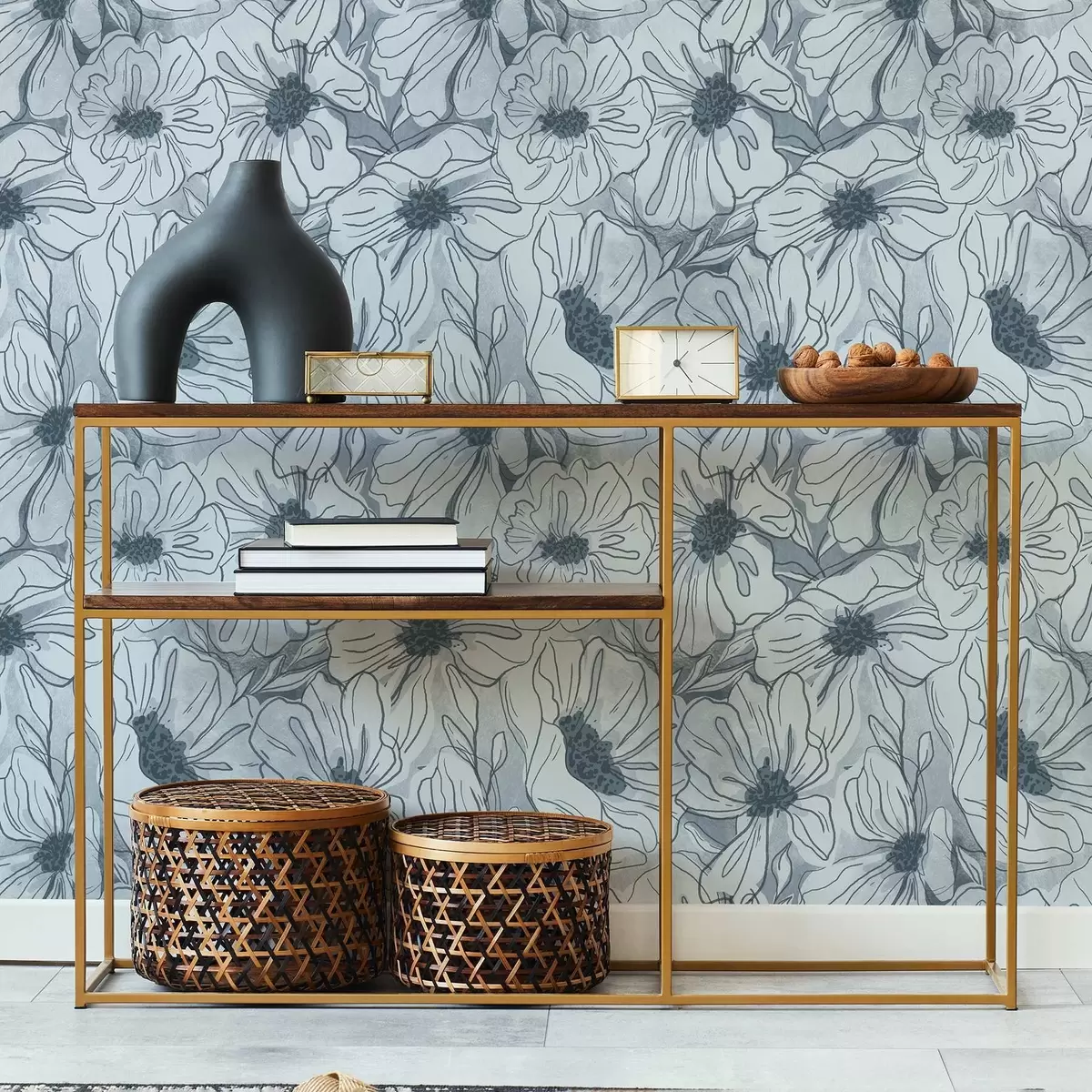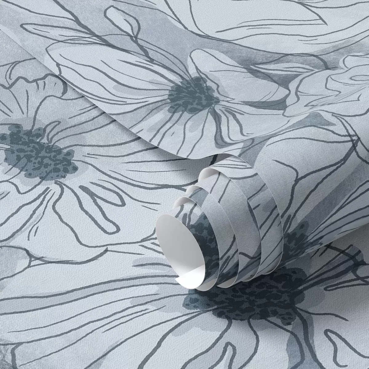 Тапет Линейни цветя в хладна сиво-синя палитра Nr. a00636v2