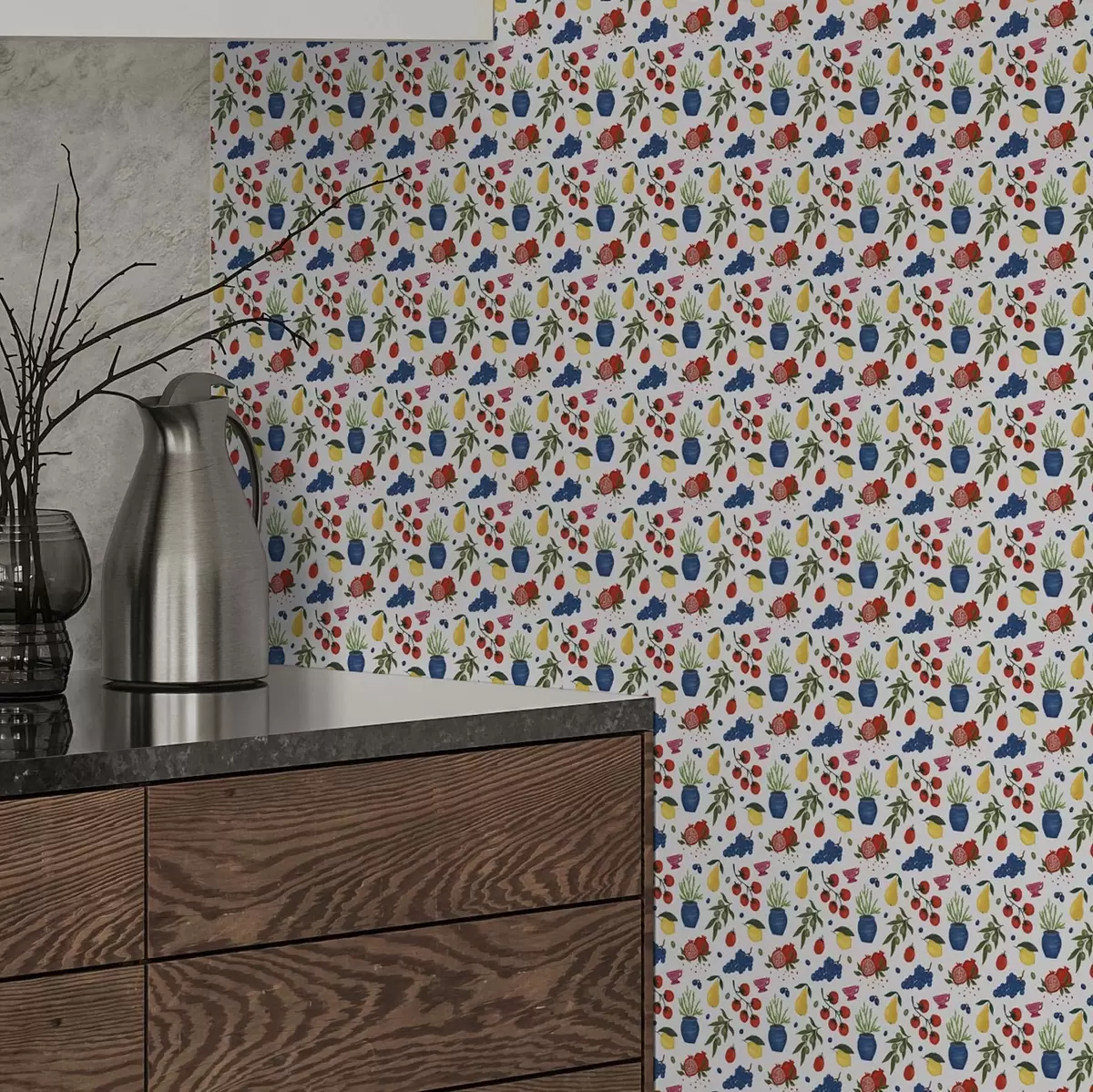 Тапет Ярък плодово-ботанически мотив на бял фон Nr. a00637v1