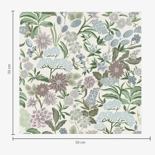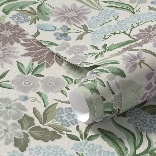 Тапет Пастелни цветя и листа в ментово-синя палитра Nr. a00642