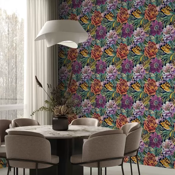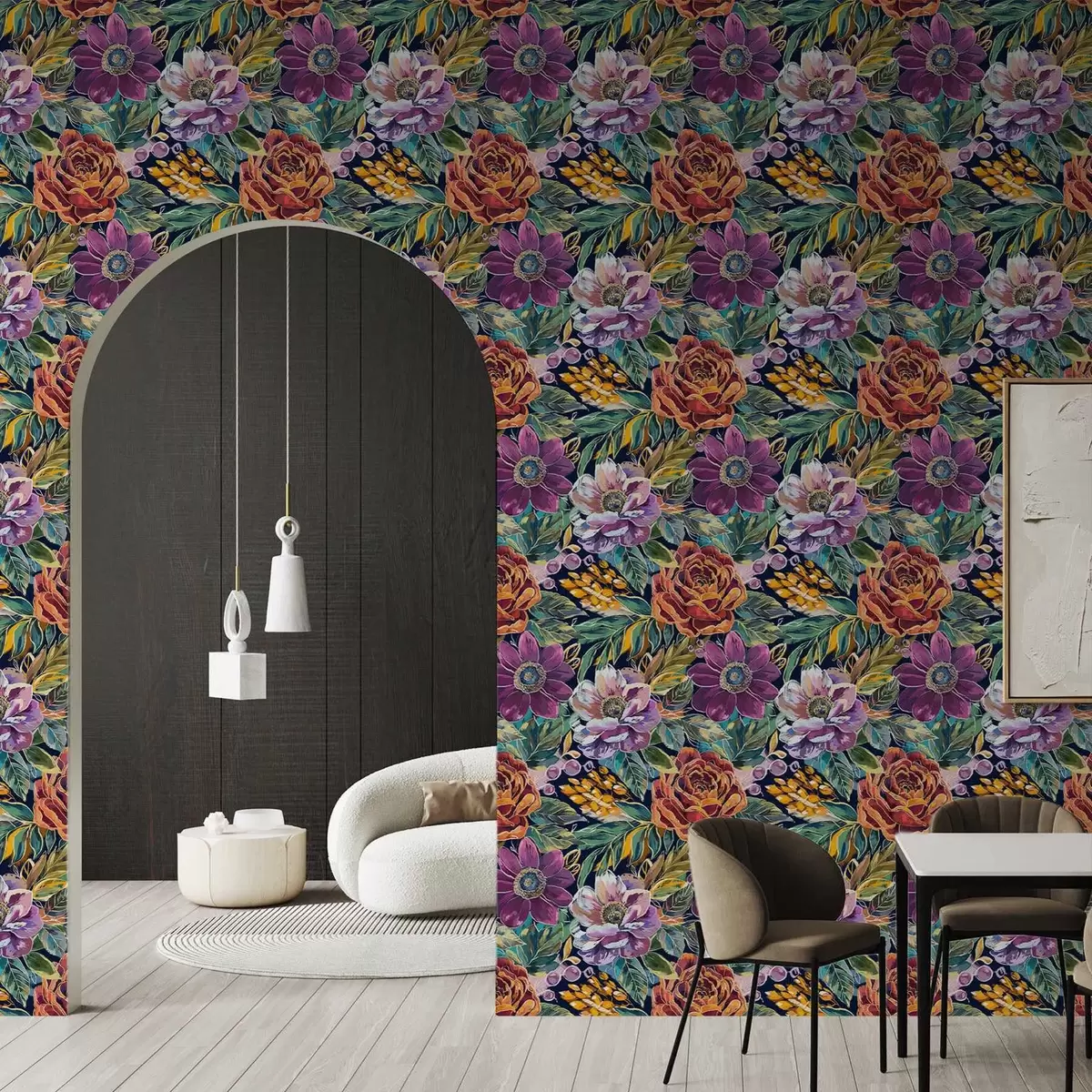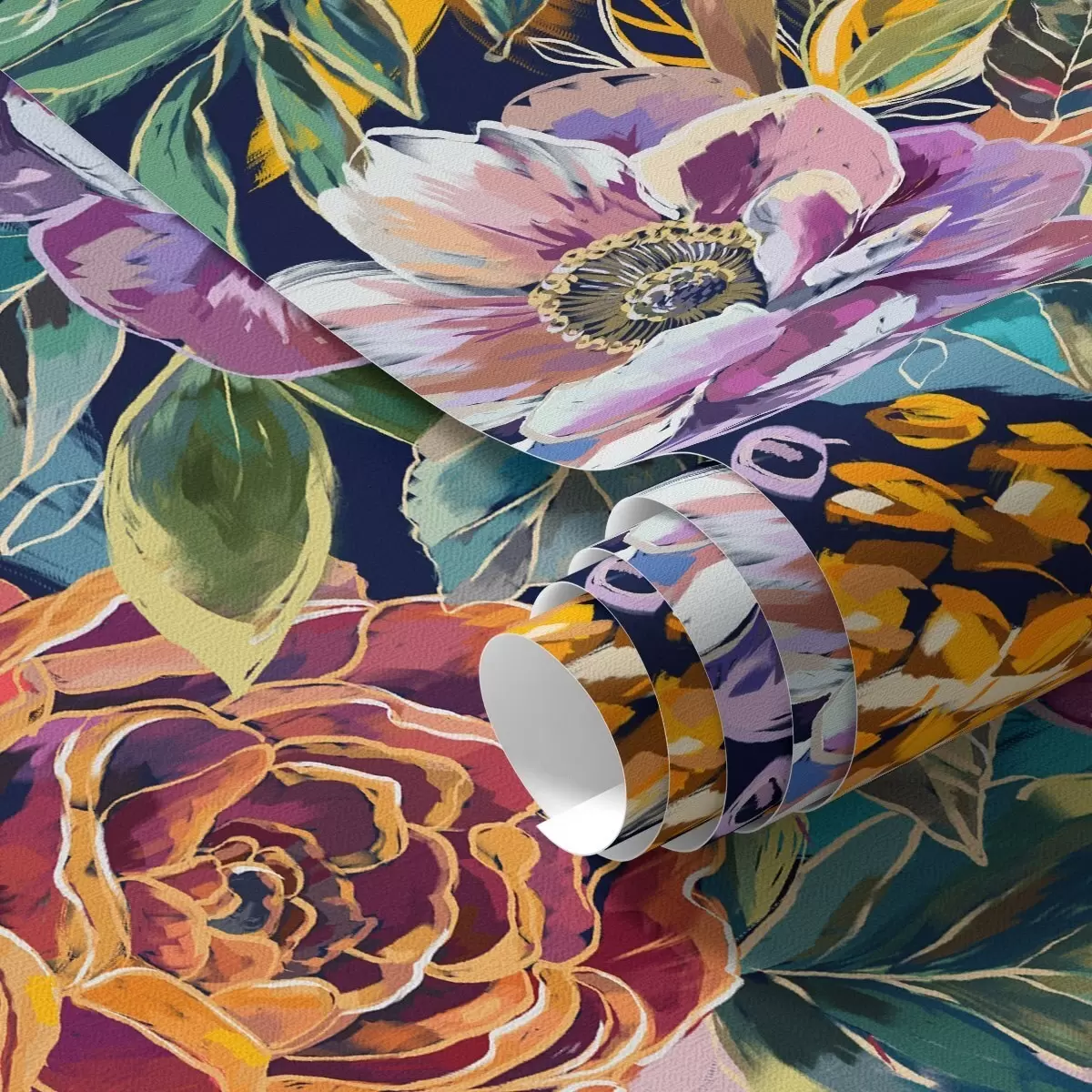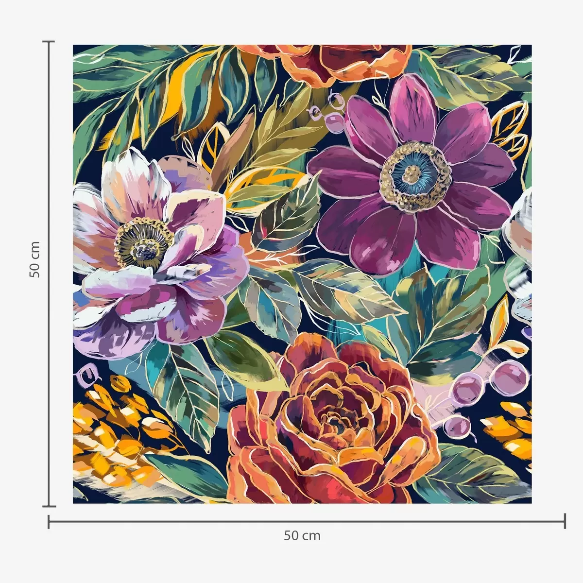 Тапет Ярки, големи цветя, нарисувани с четка върху тъмно син фон Nr. a00643
