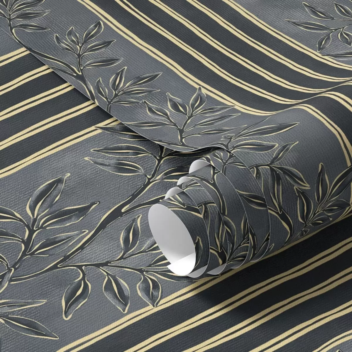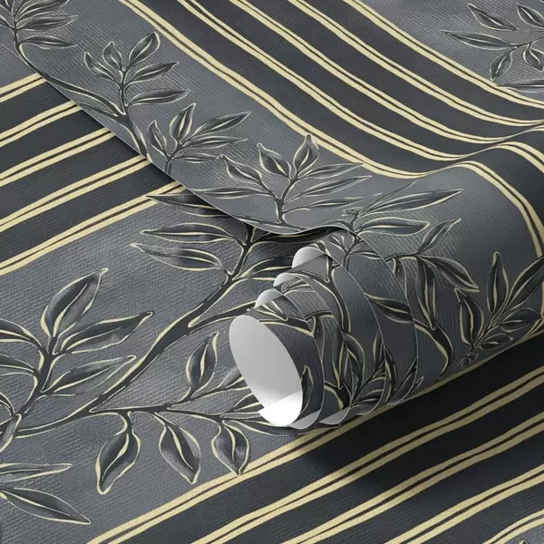 Тапет Вертикални ивици с ботанични мотиви в тъмни тонове Nr. a00648