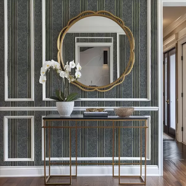Тапет Вертикални ивици с ботанични мотиви в тъмни тонове Nr. a00648