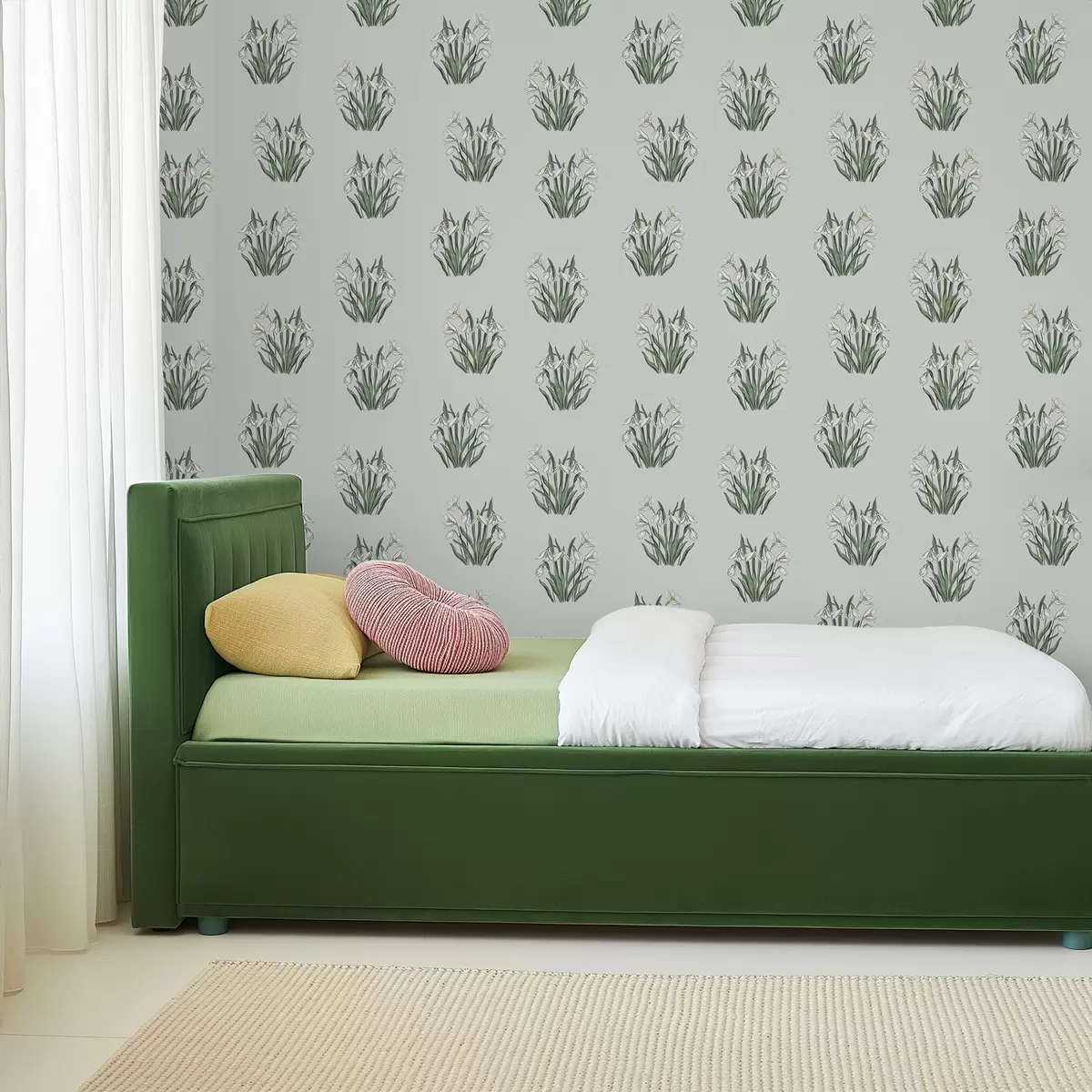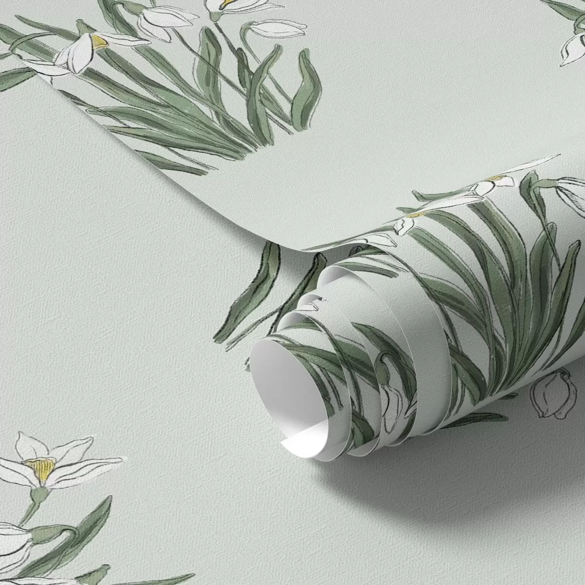 Тапет Зимни звезди с зелени листа на пастелнозелен фон Nr. a00651