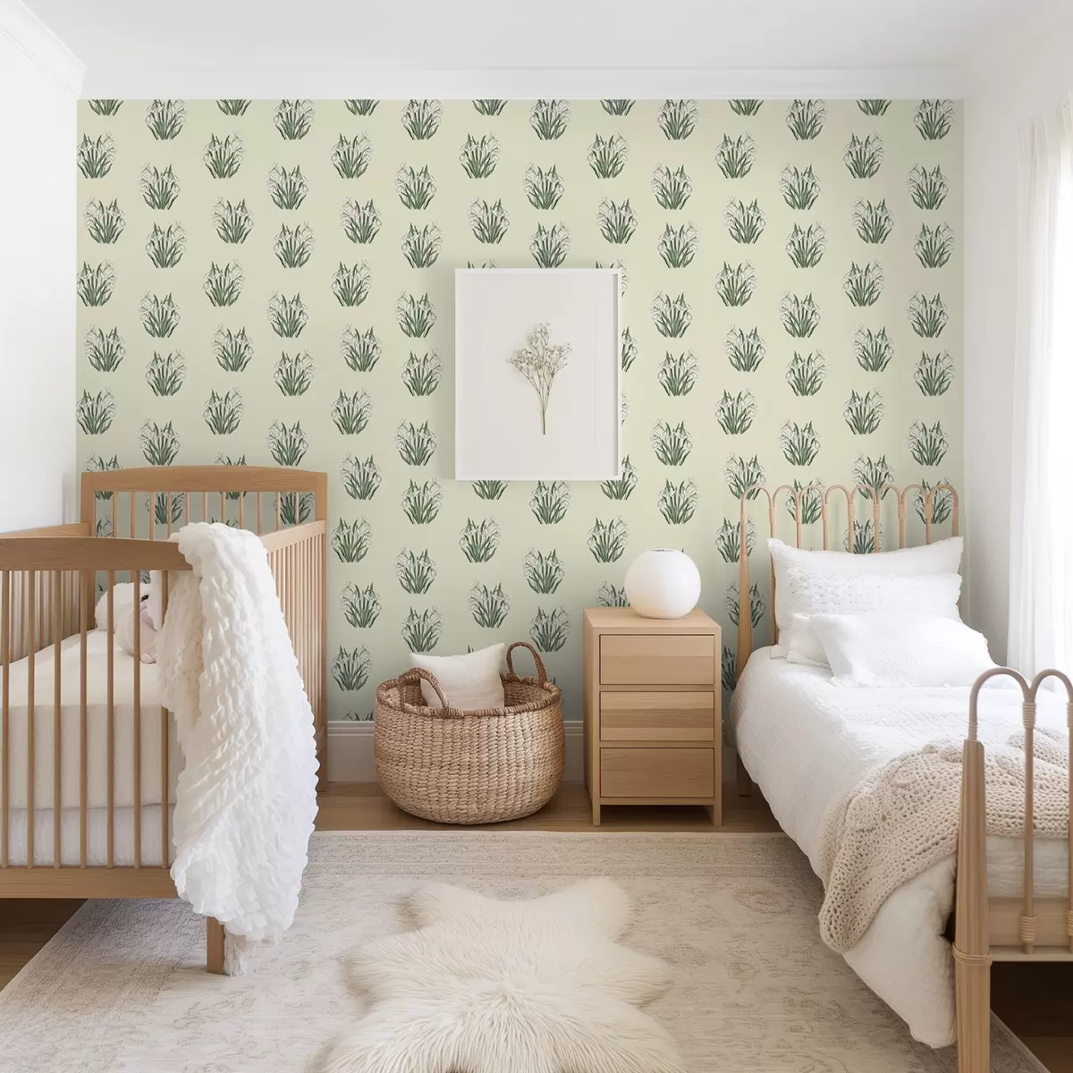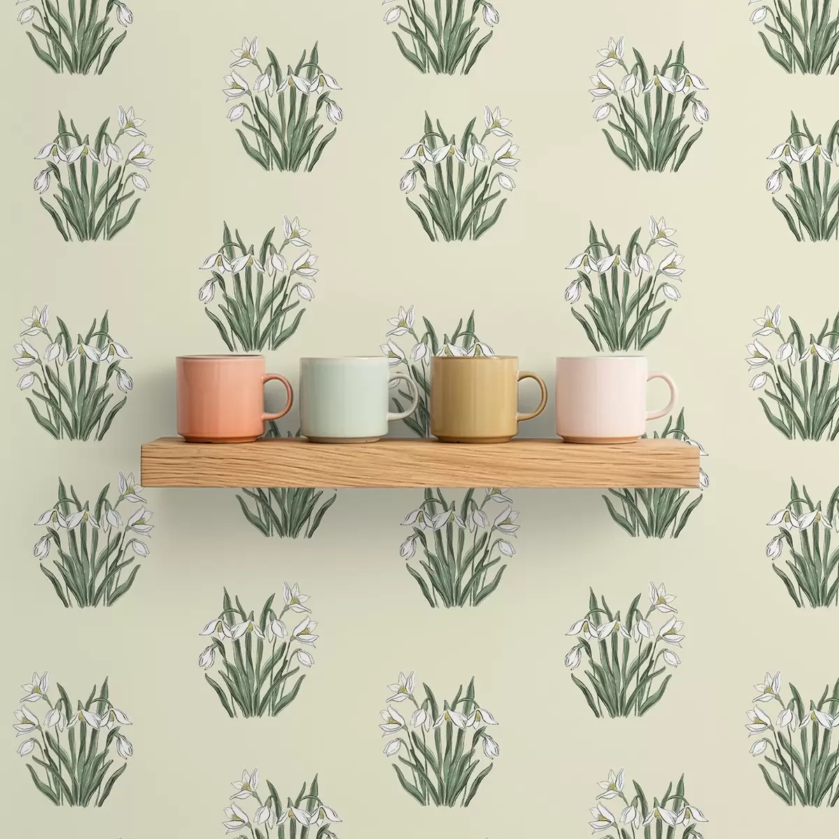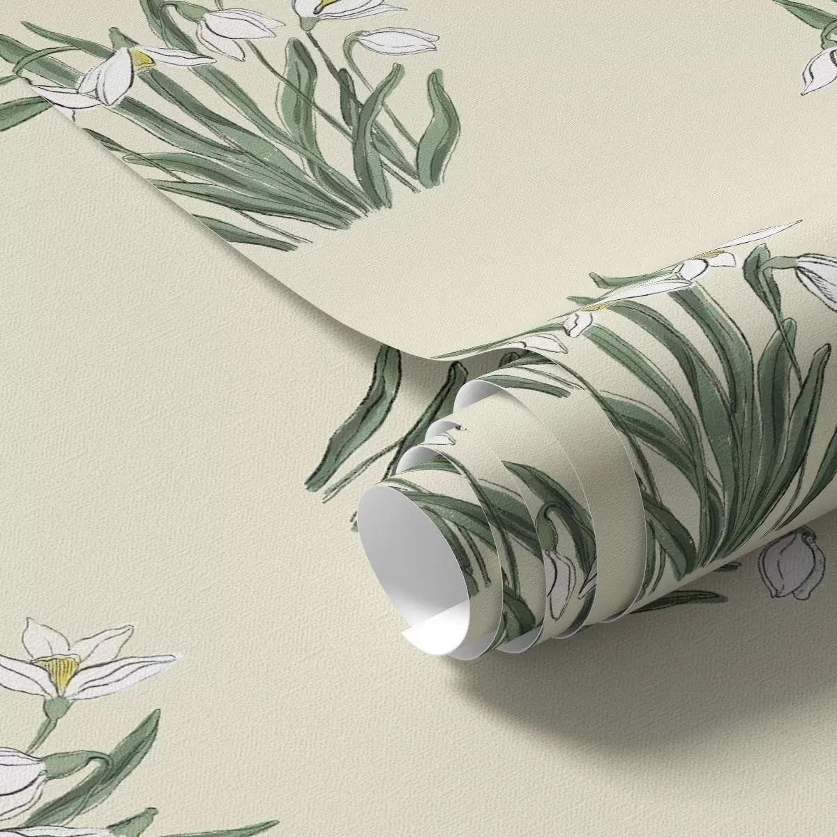 Тапет Зимни звезди с зелени листа на кремав фон Nr. a00651v2