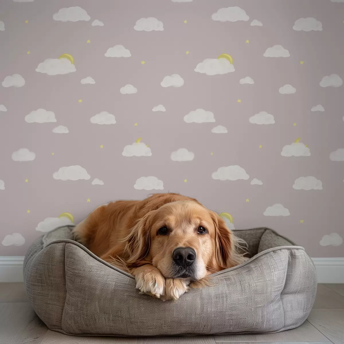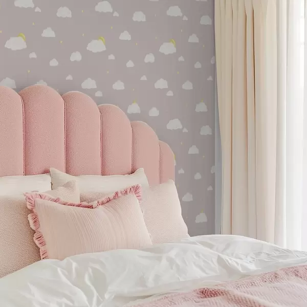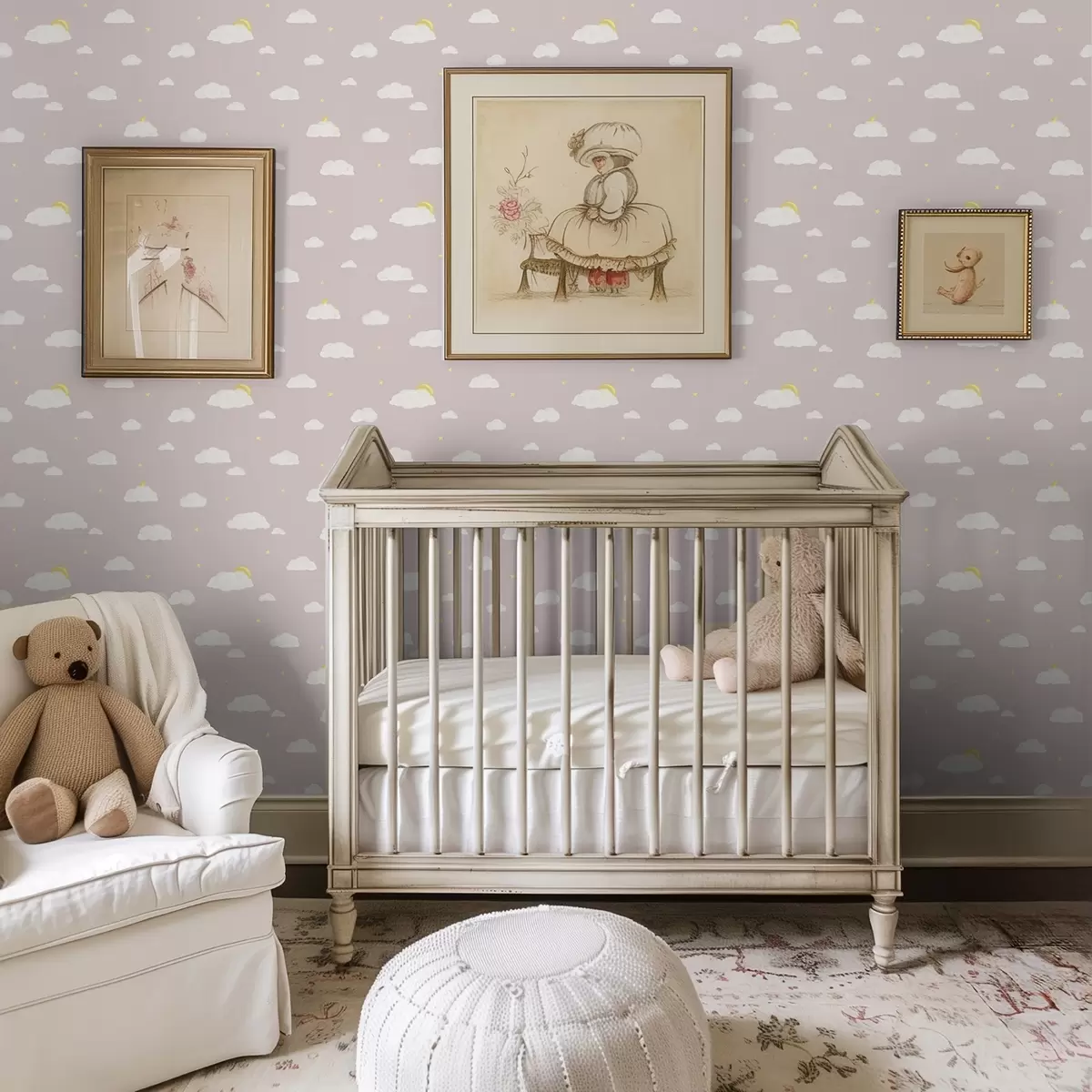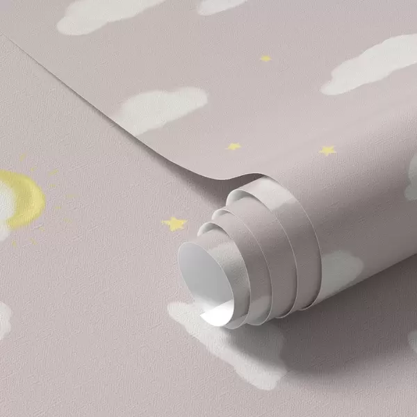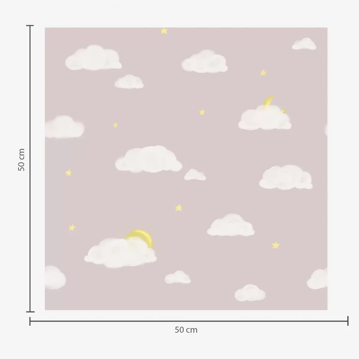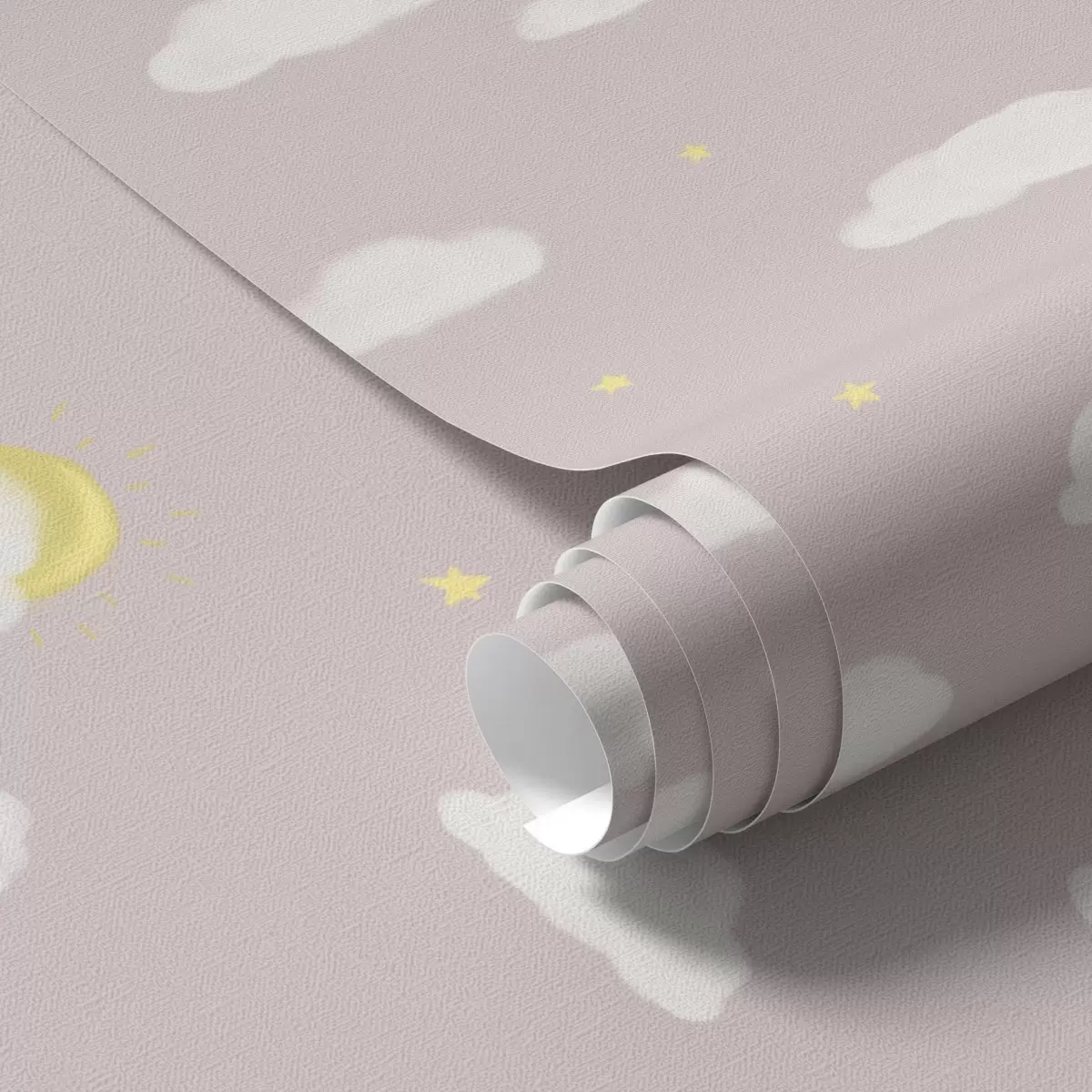 Тапет Меки облаци, звезди и слънце на розово-сив фон Nr. a00652v2