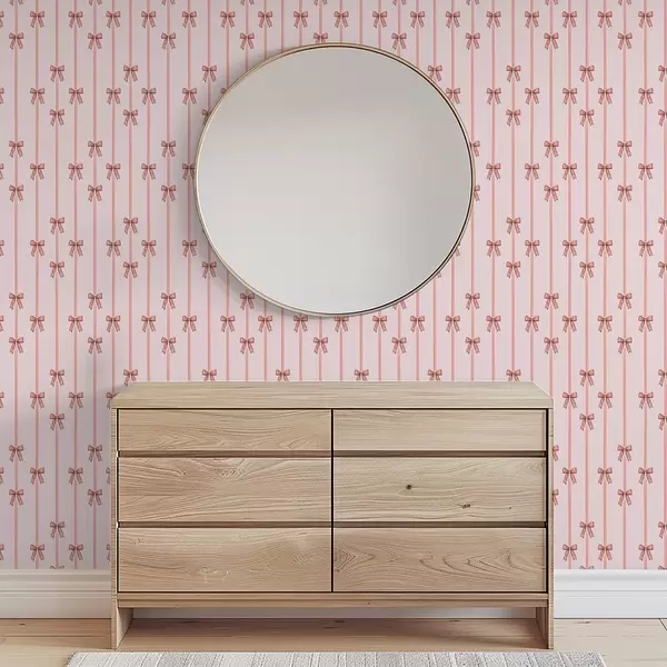 Тапет Вертикални панделки с панделки, прахово розов фон Nr. a00653v2