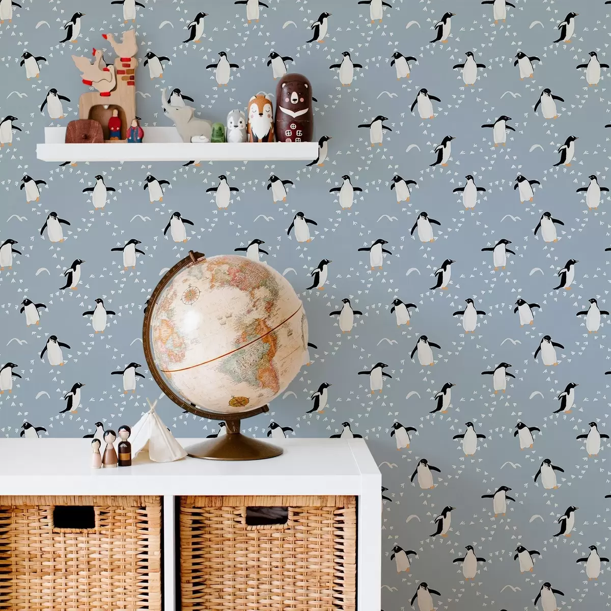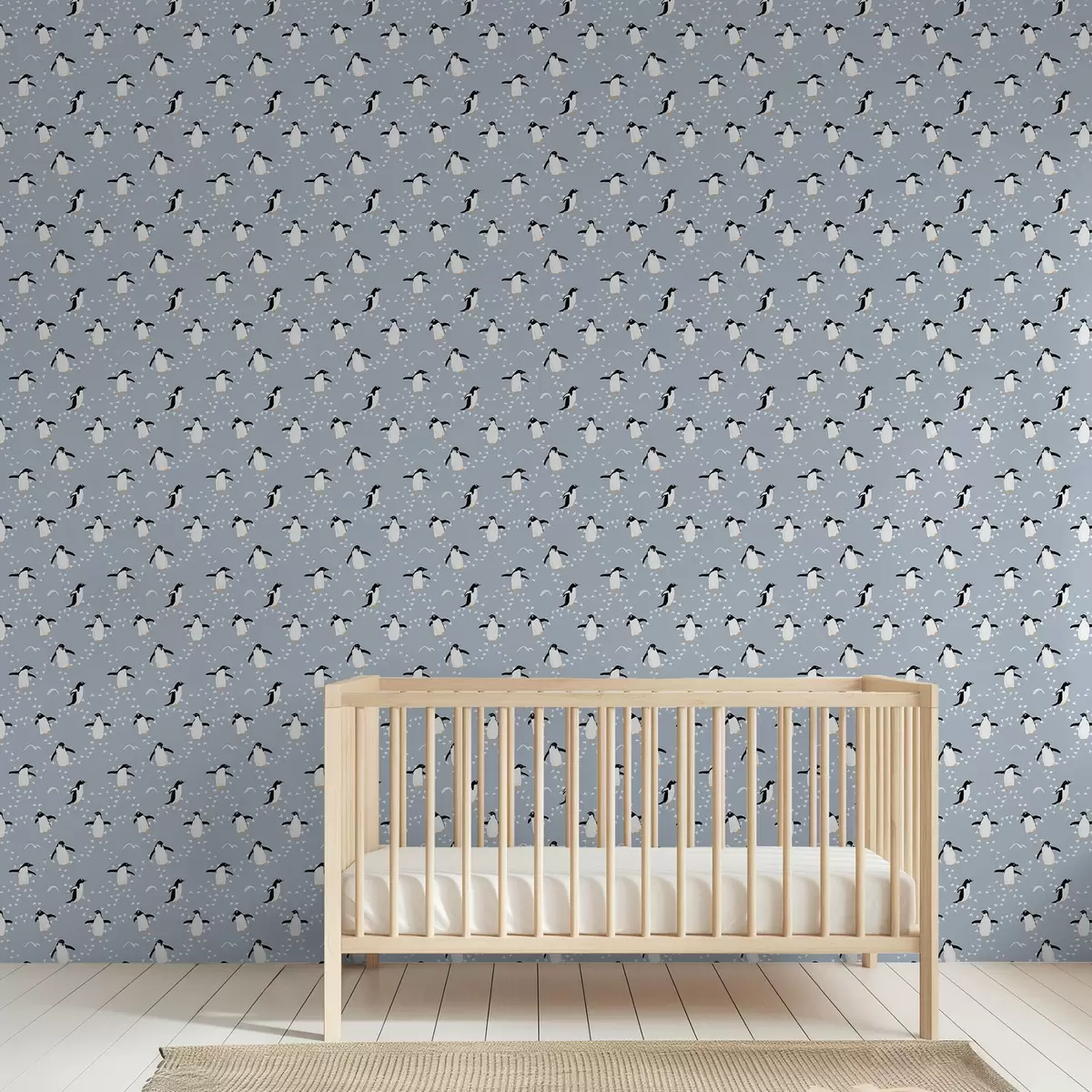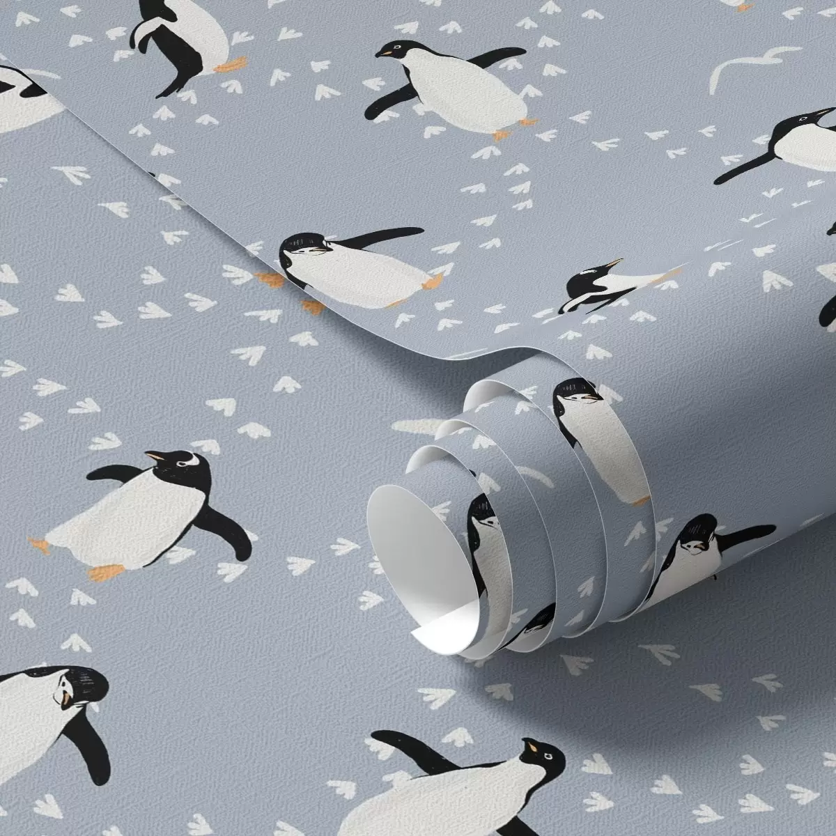 Тапет Пингвини на сиво-синьо с отпечатъци Nr. a00655