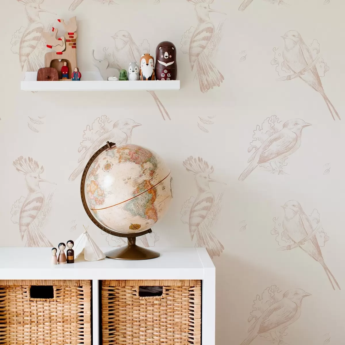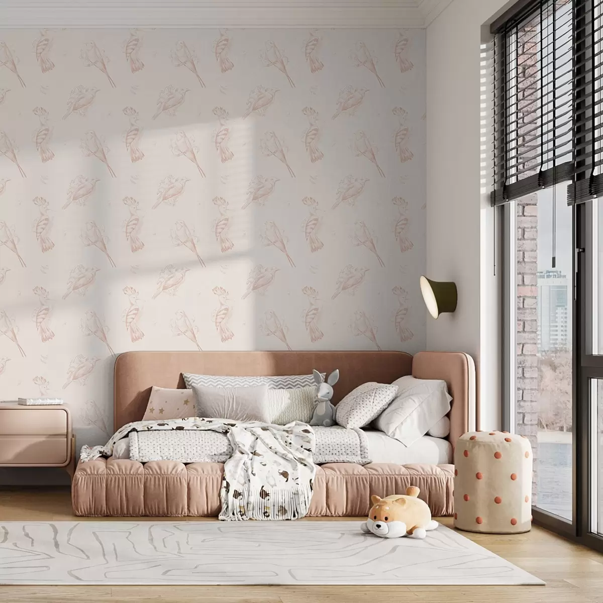 Тапет Птичи тоалет: скицирайте птици върху прасково-кремав фон Nr. a00656v2