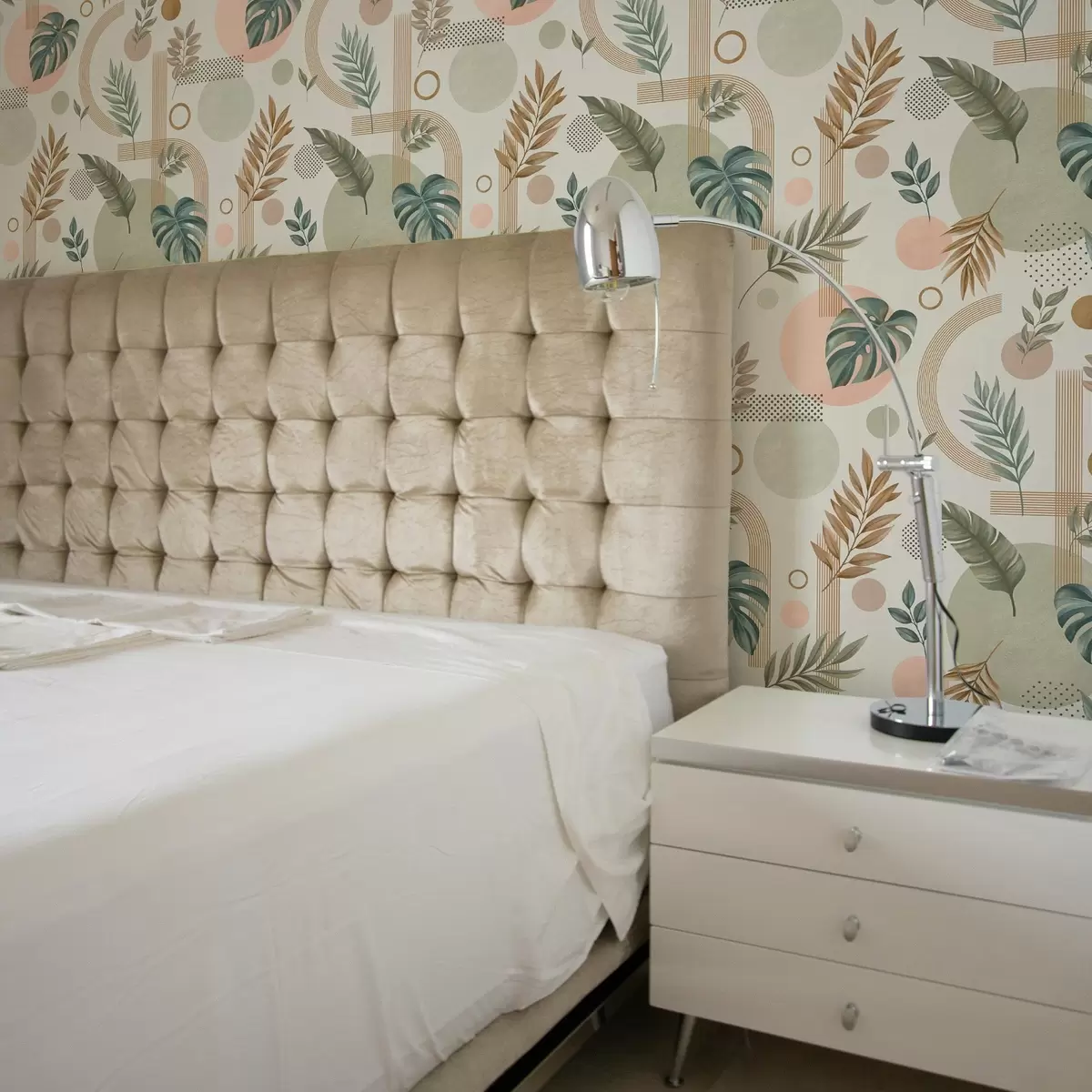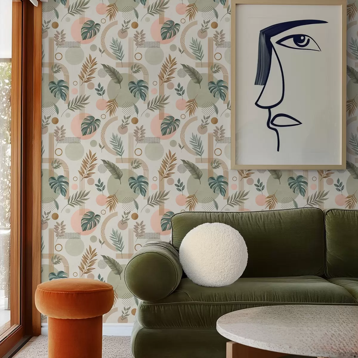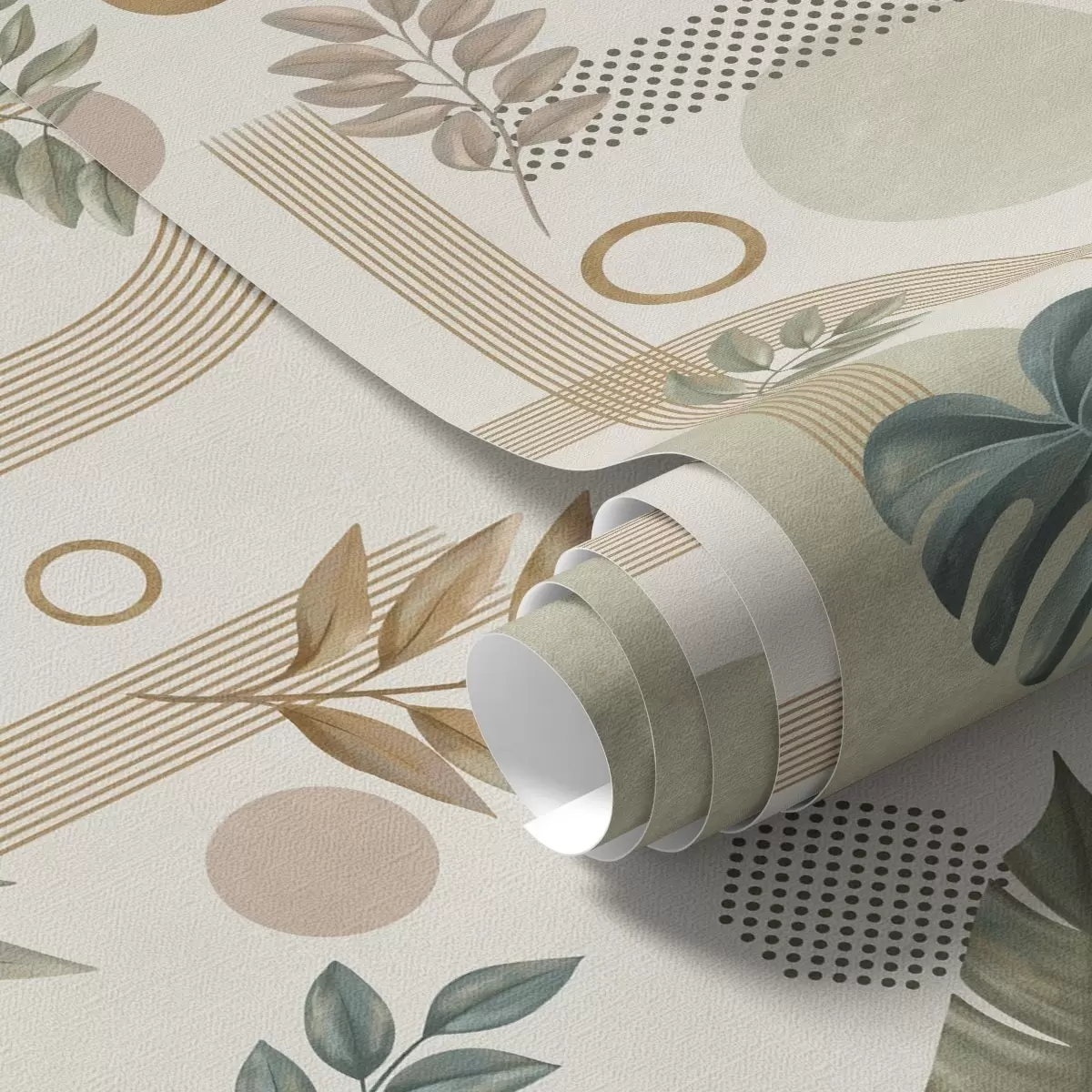 Тапет Листа и геометрични форми в спокойни топли нюанси Nr. a00677