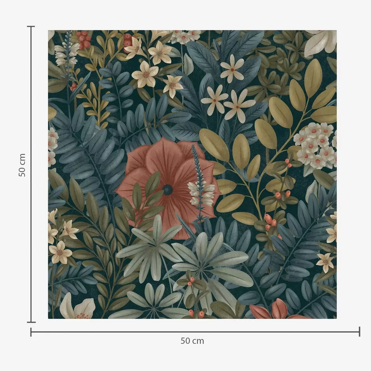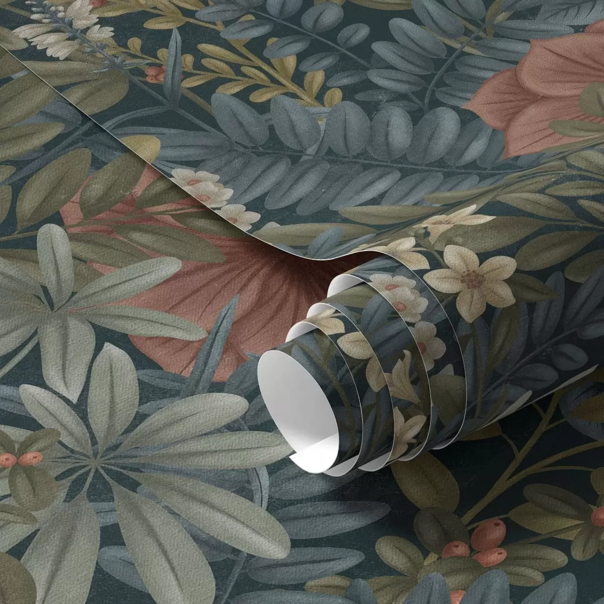 Тапет Тъмно фоново изображение с гъсти цветя и листа в топли тонове Nr. a00678