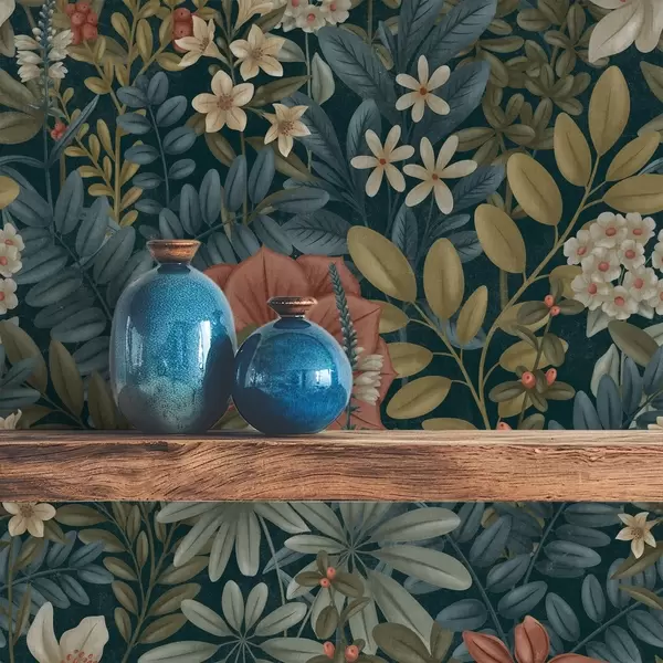 Тапет Тъмно фоново изображение с гъсти цветя и листа в топли тонове Nr. a00678