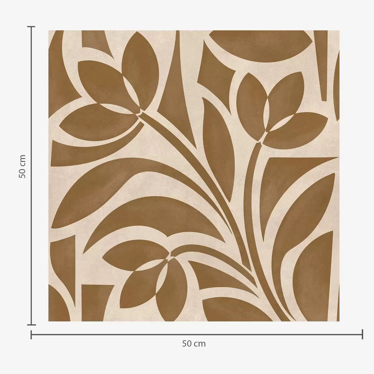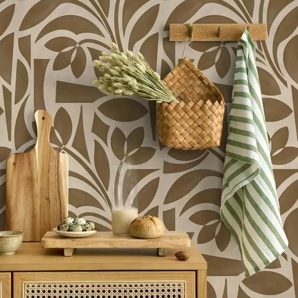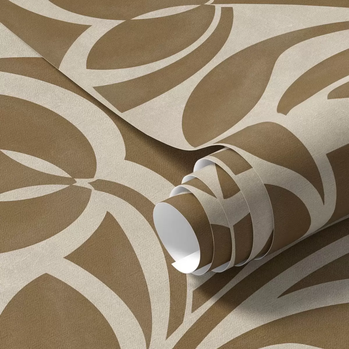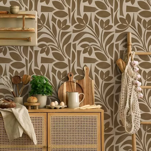 Тапет Геометрични силуети на листа, карамелено-кафяви върху бежово Nr. a00679
