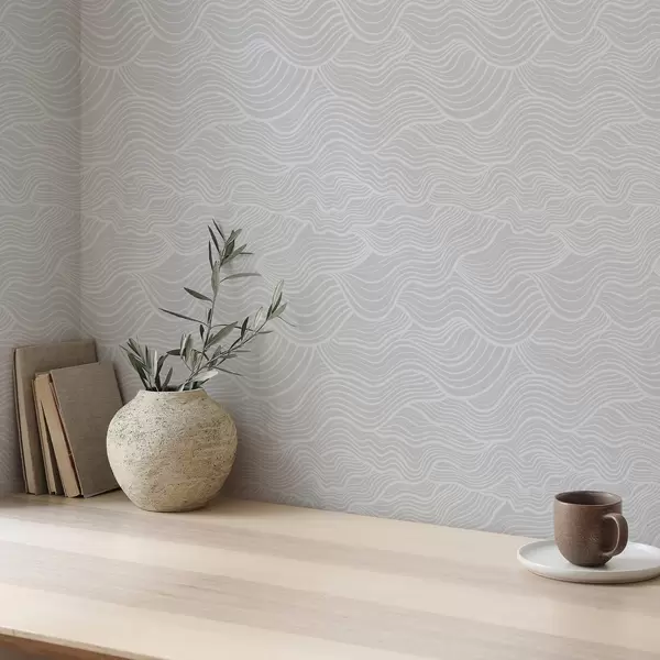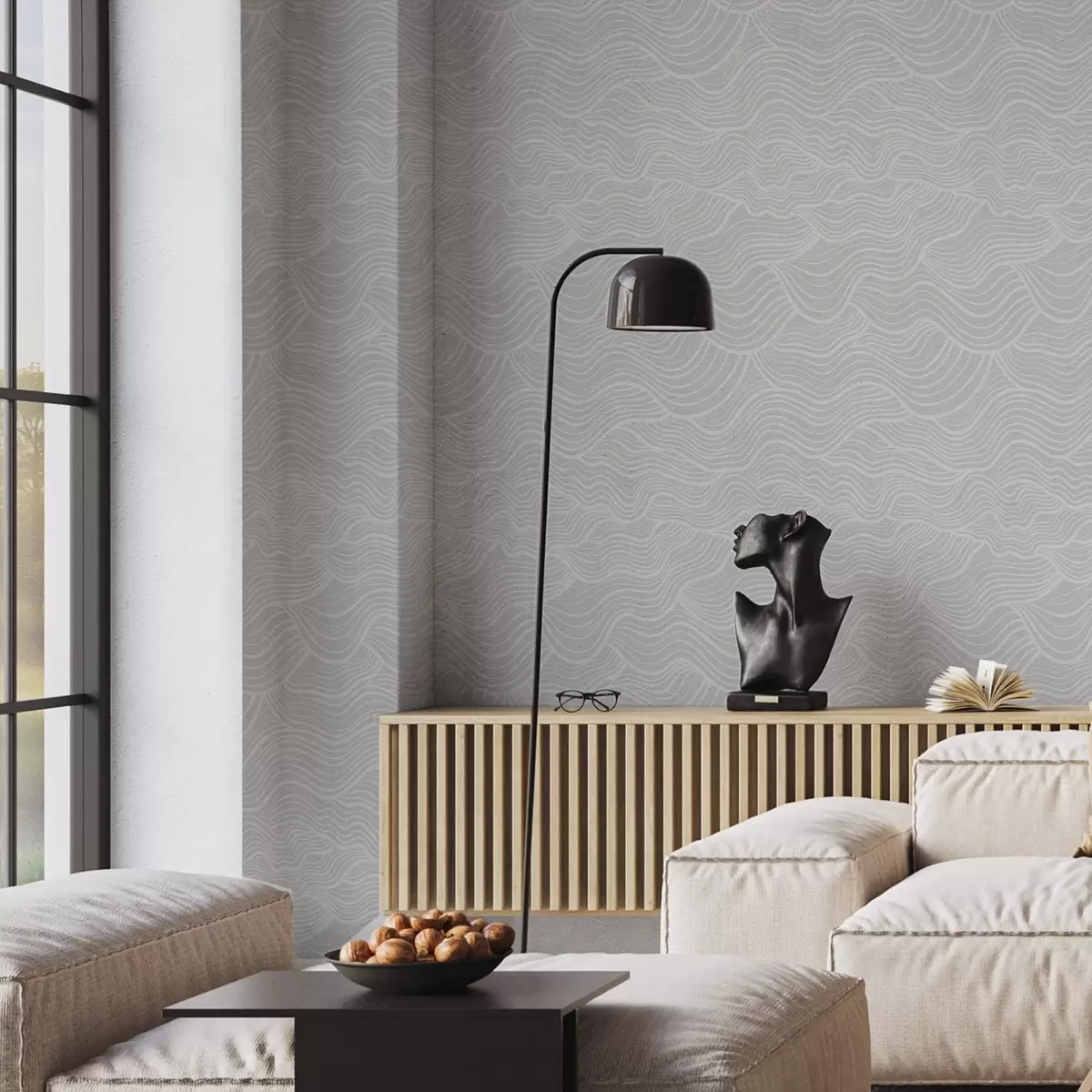 Тапет Вълнообразен орнамент: светли линии на сив фон Nr. a00681v2