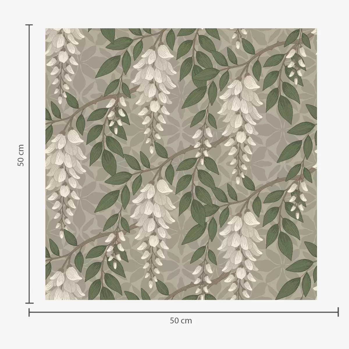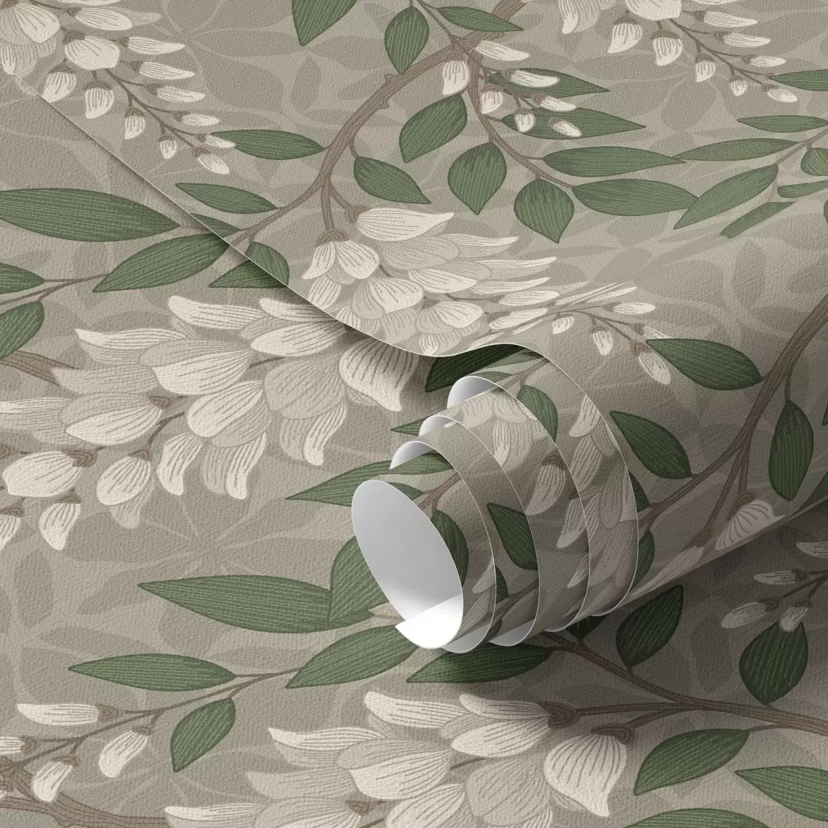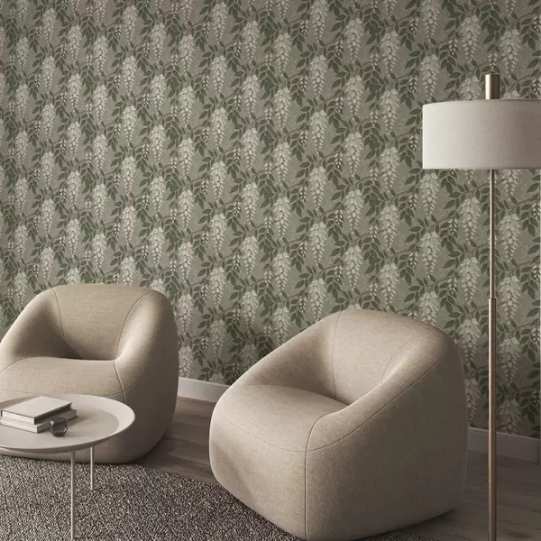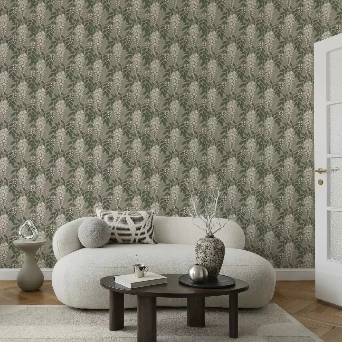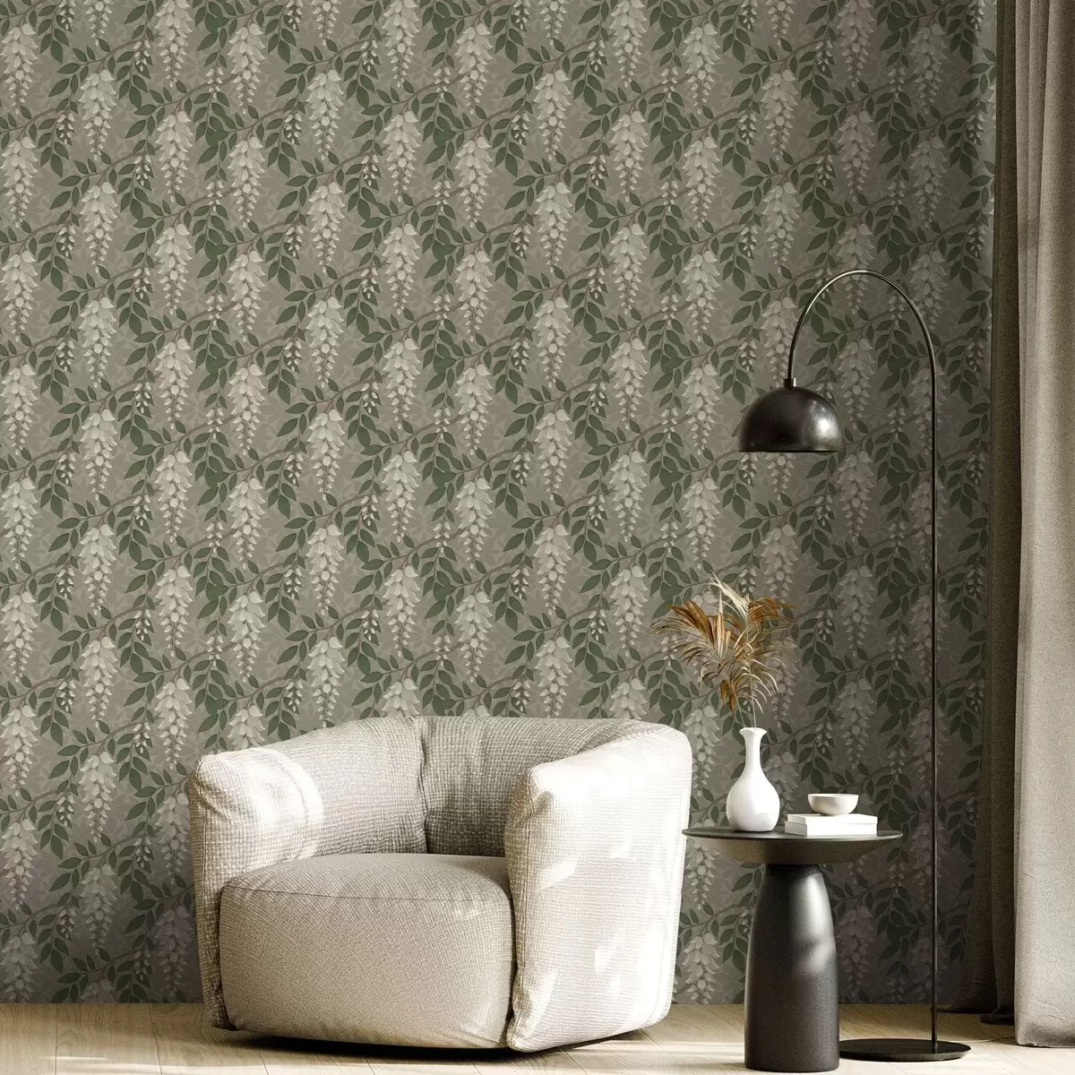 Тапет Светла глициния на сиво-маслинено фоново, каскадни от гроздове Nr. a00694