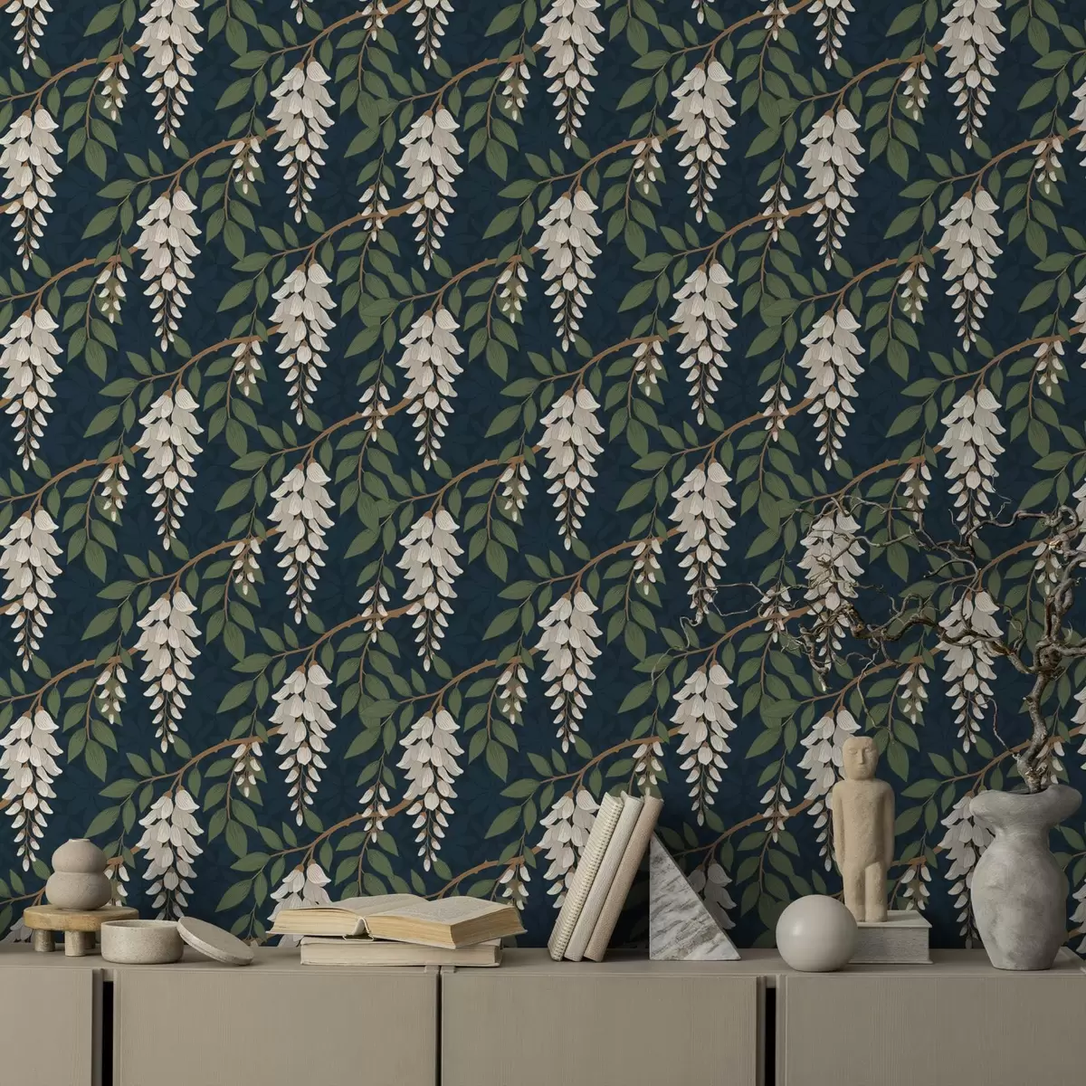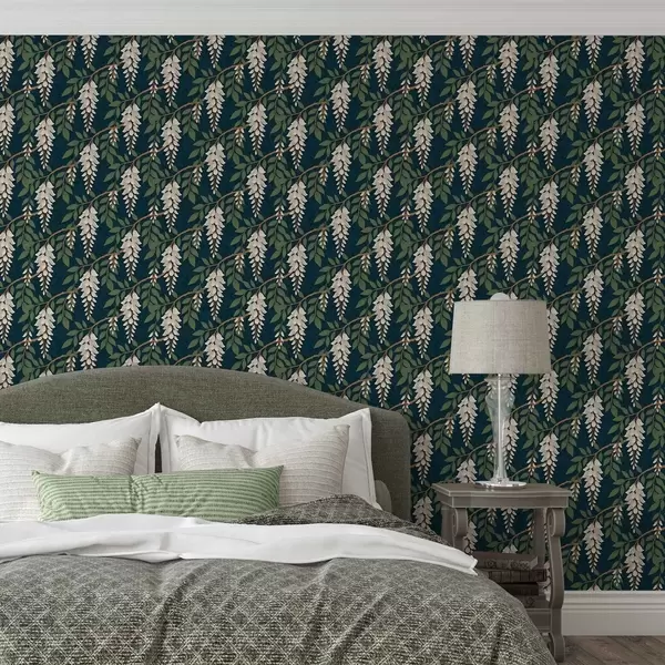 Тапет Слонова кост на тъмнозелен фон Nr. a00694v1