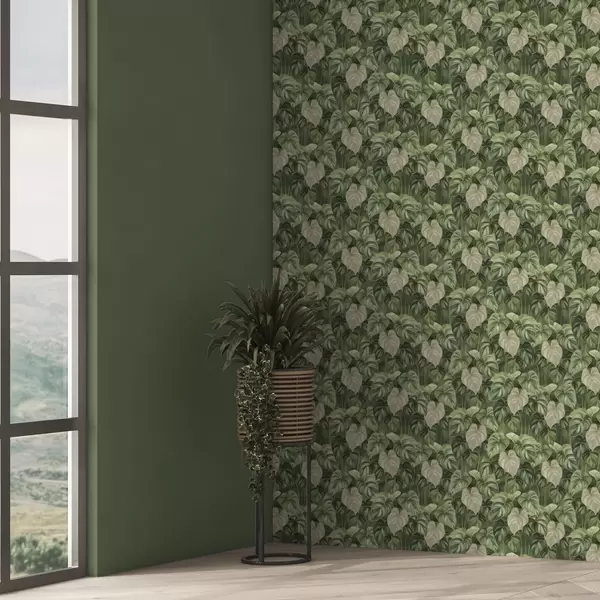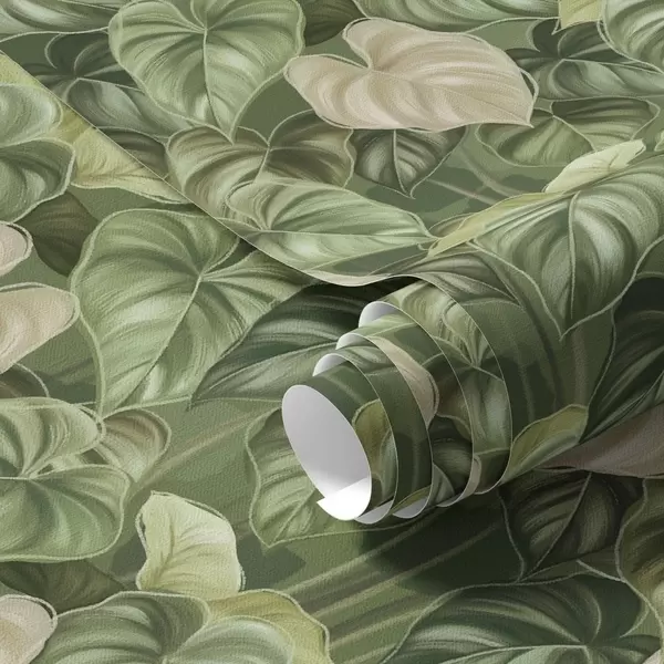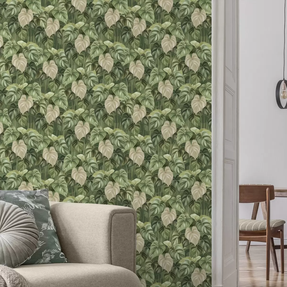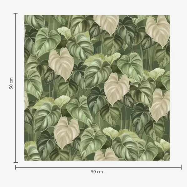 Тапет Буйни листа на филодендрон в нюанси на зелено и слонова кост Nr. a00695