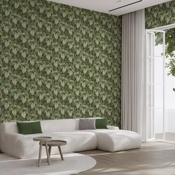 Тапет Буйни листа на филодендрон в нюанси на зелено и слонова кост Nr. a00695