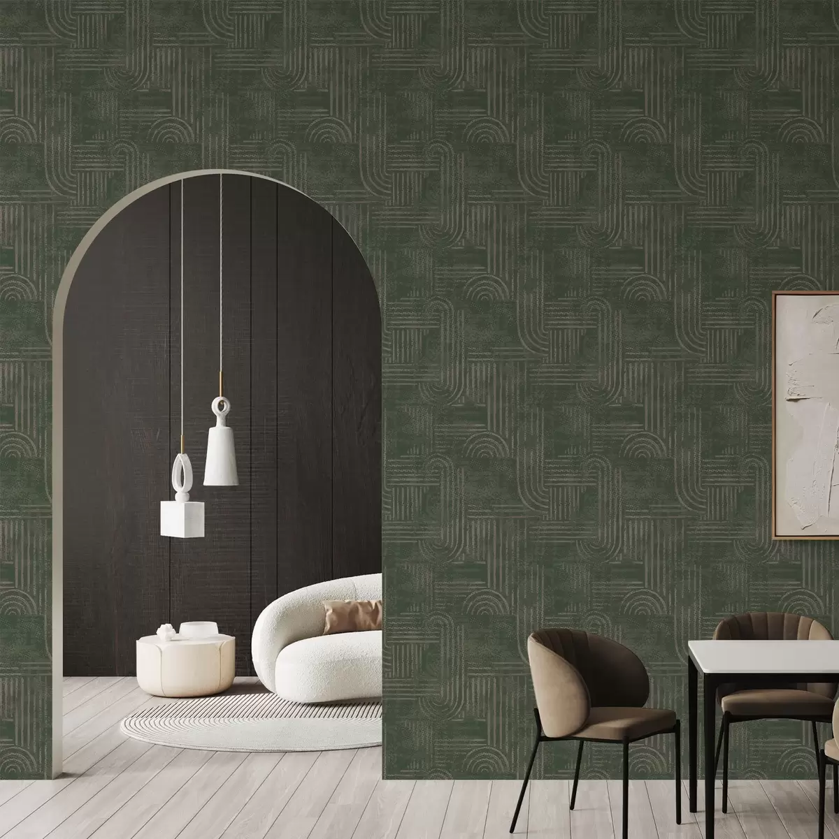 Тапет Геометричен мотив с дъги в зелена палитра Nr. a00697