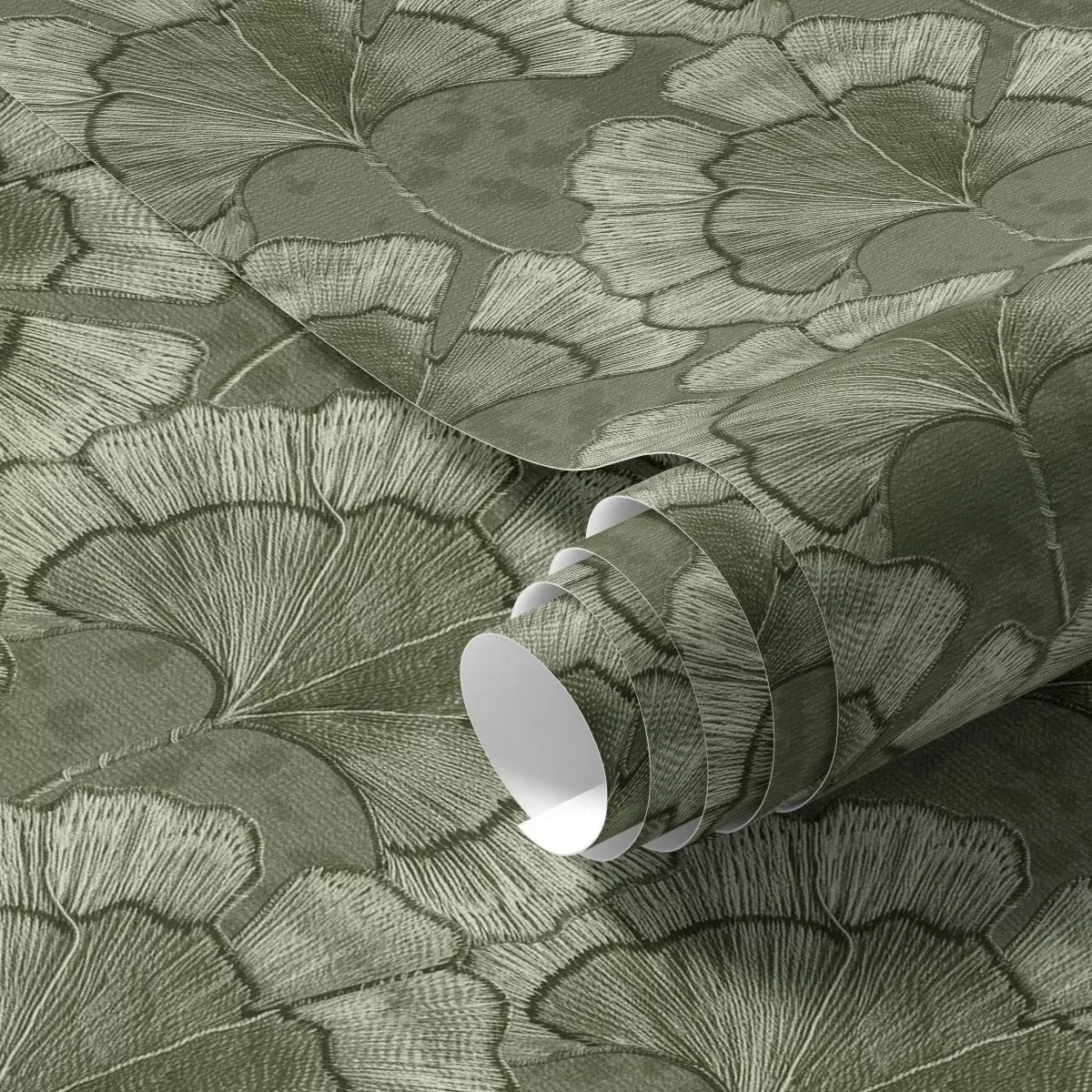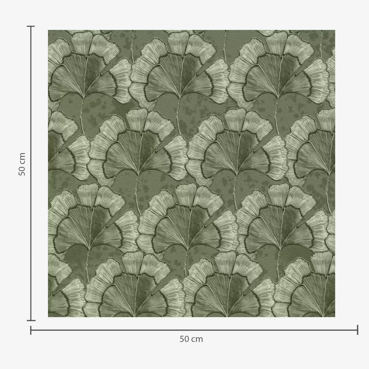Тапет Графичен мотив с гинко в хладна зелена палитра Nr. a00709