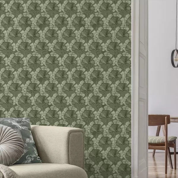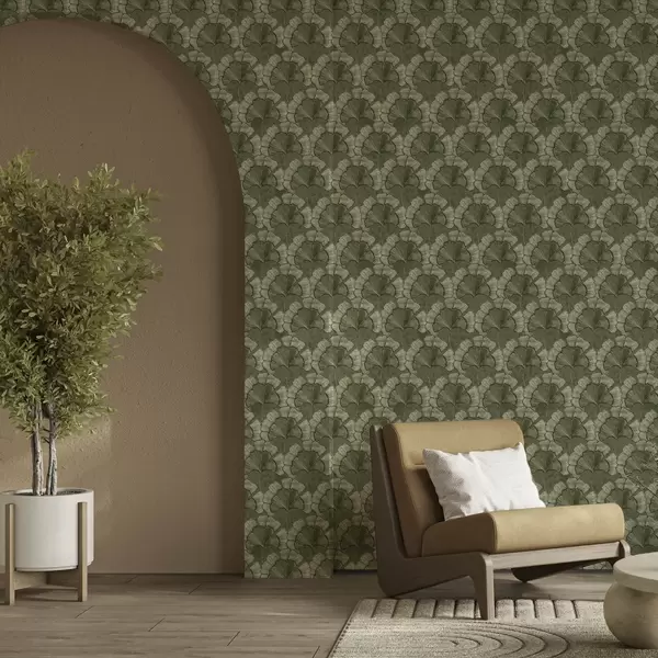 Тапет Графичен мотив с гинко в хладна зелена палитра Nr. a00709