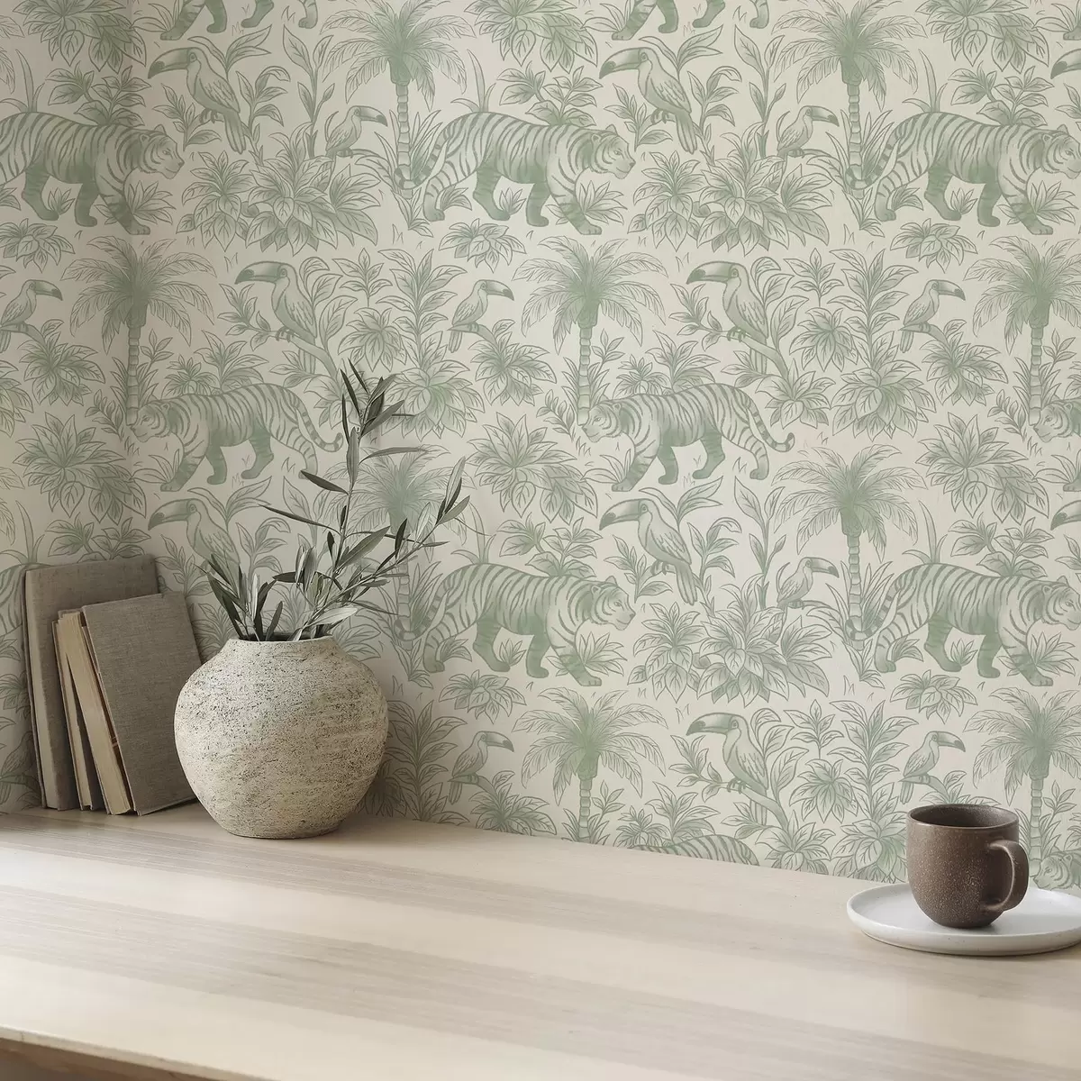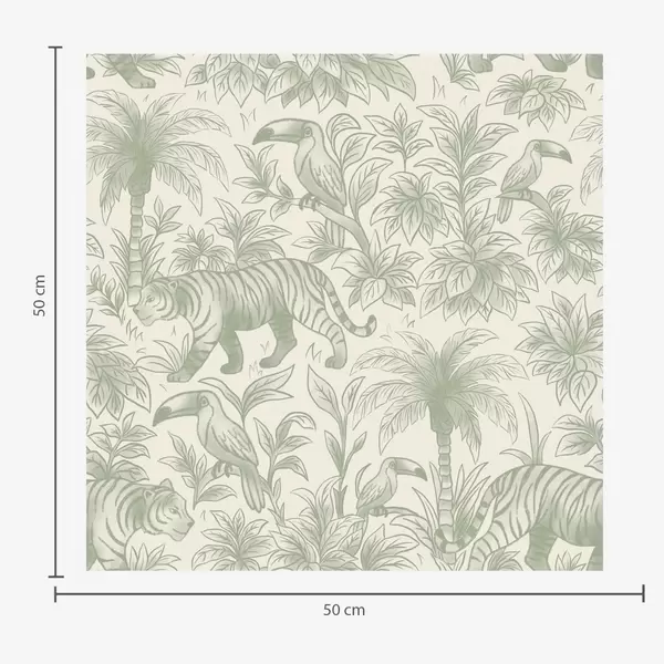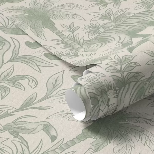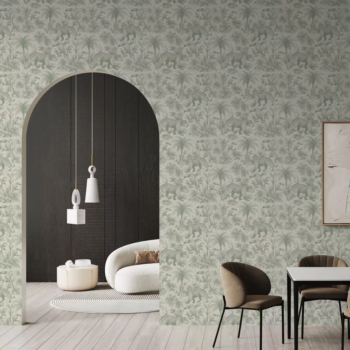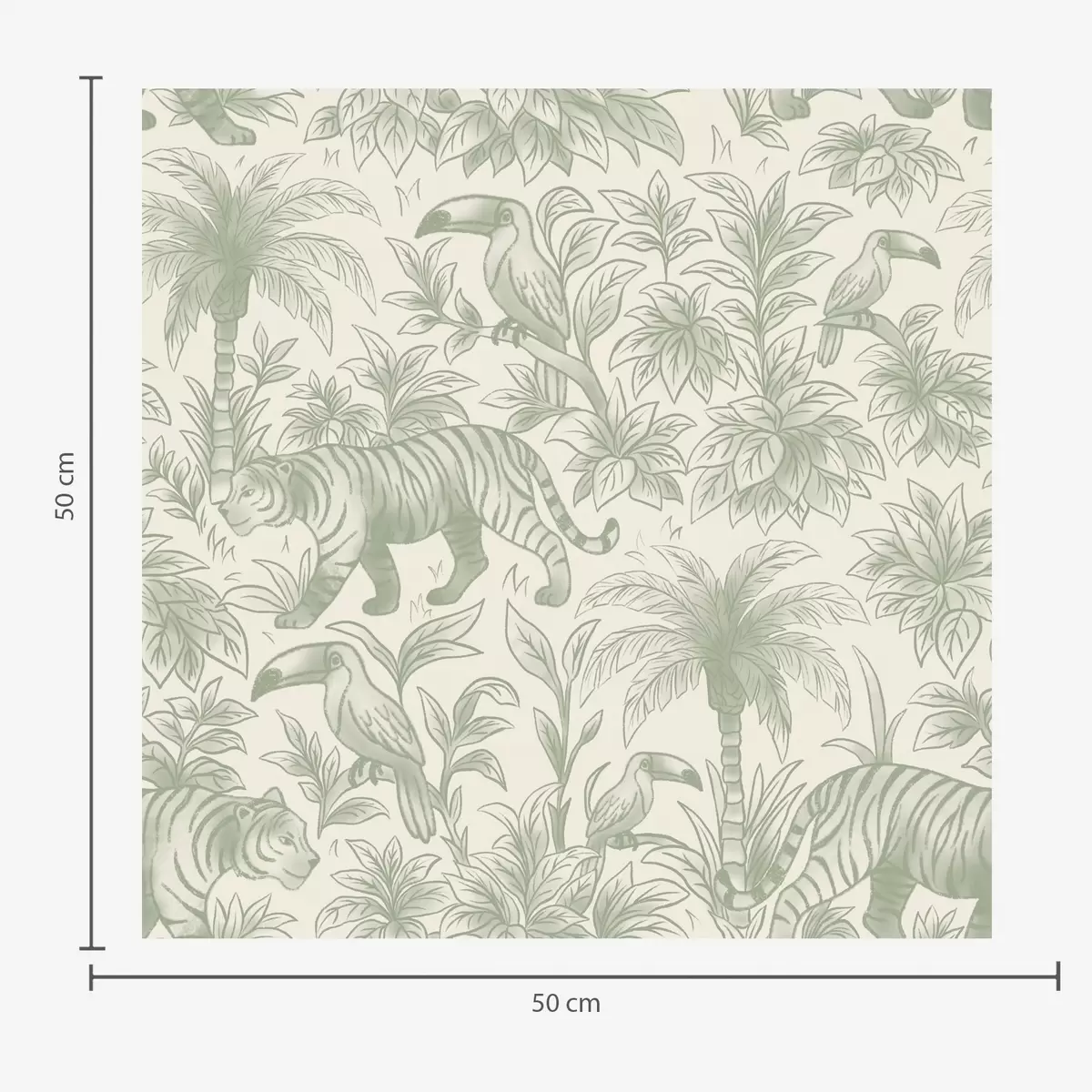 Тапет Тигри и тропически птици сред палми на светъл фон Nr. a00711