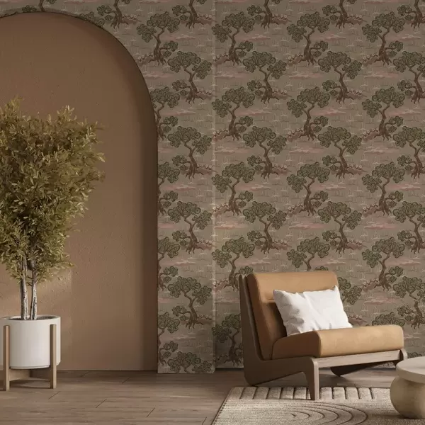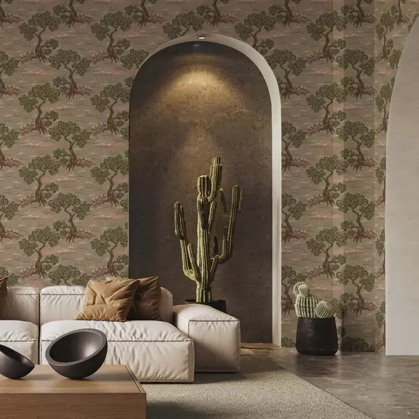 Тапет Източен пейзаж с причудливи дървета на пясъчен фон Nr. a00715