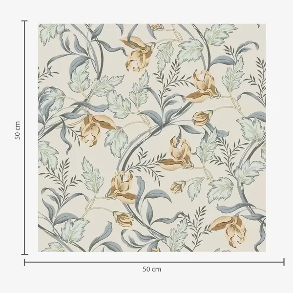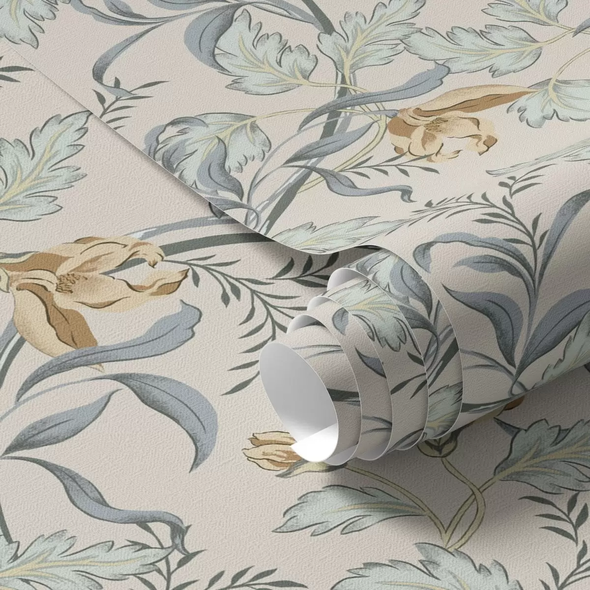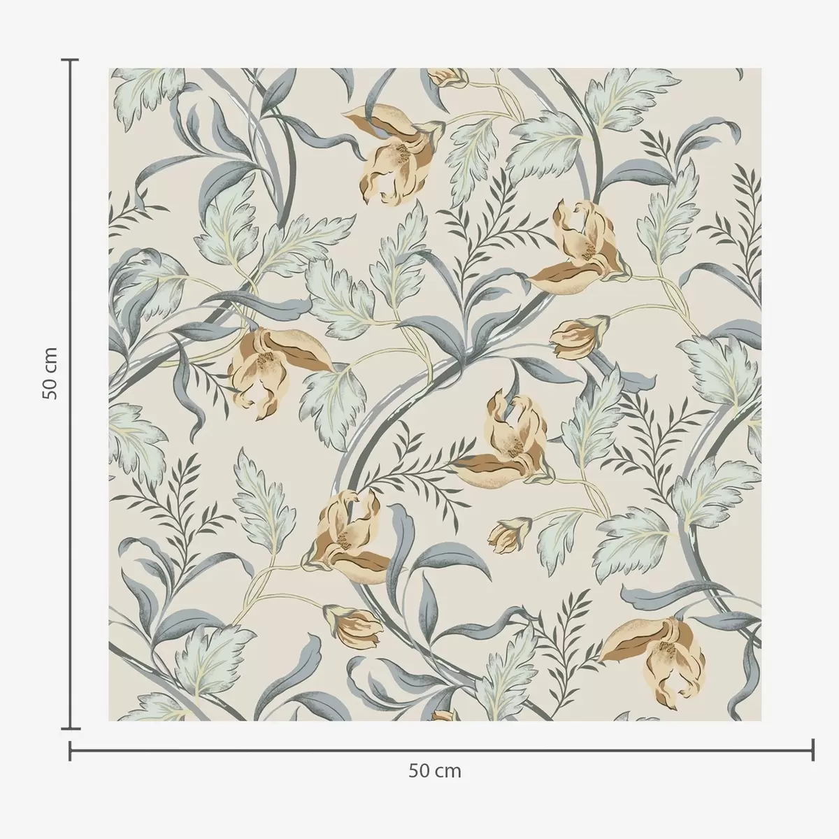 Тапет Ретро цветя със синьо листа на кремав фон Nr. a00717