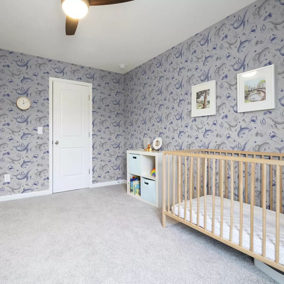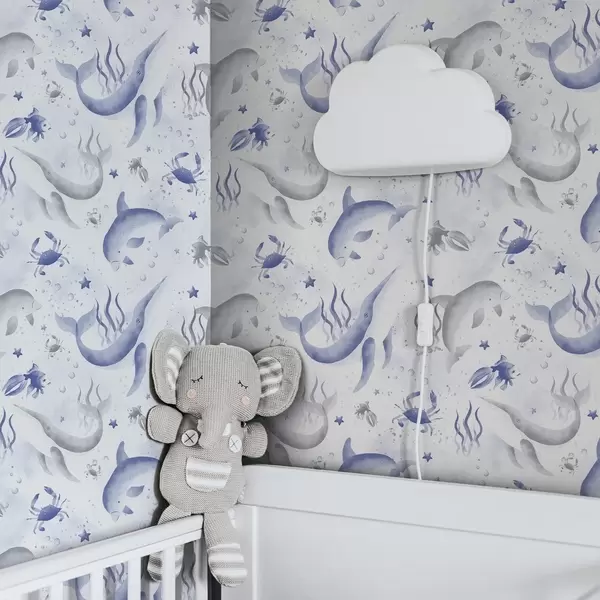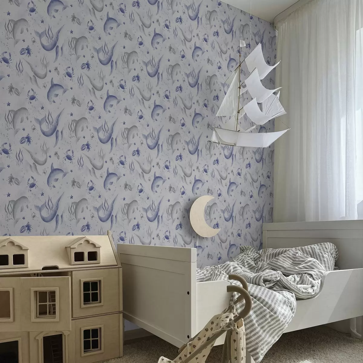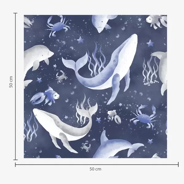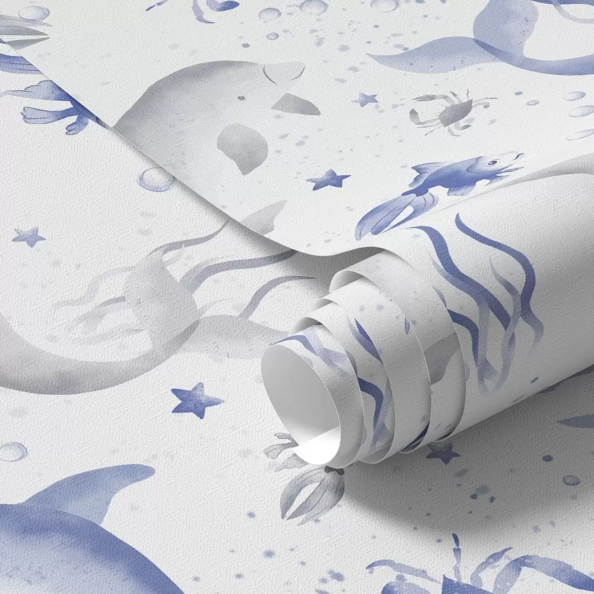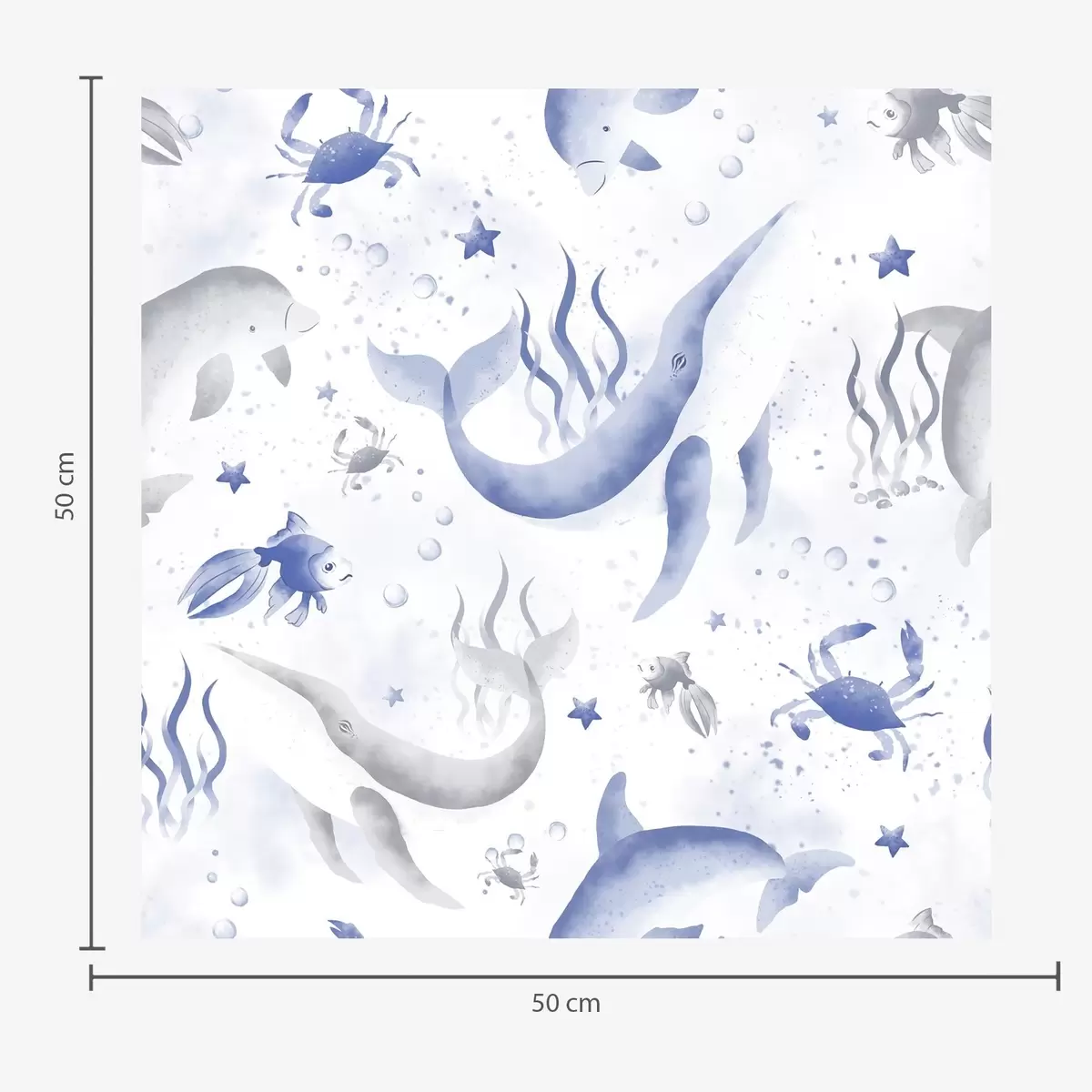 Тапет Морски китове и делфини в сини тонове на бял фон Nr. a00720v1