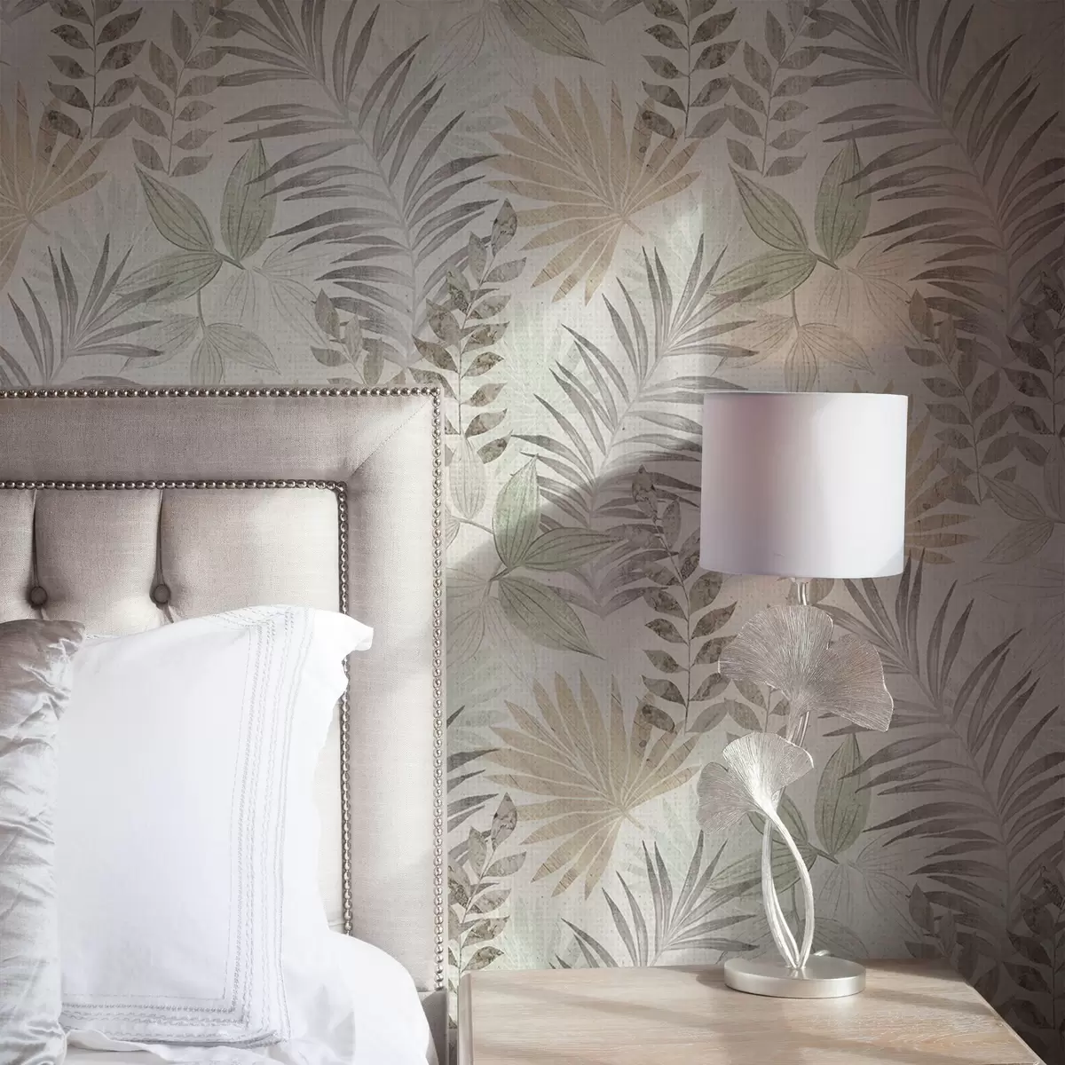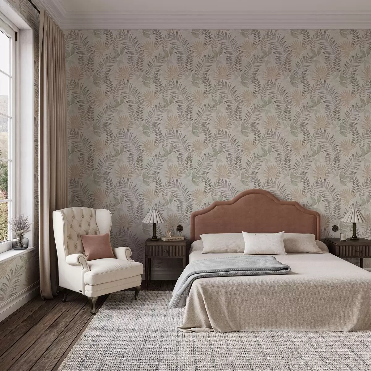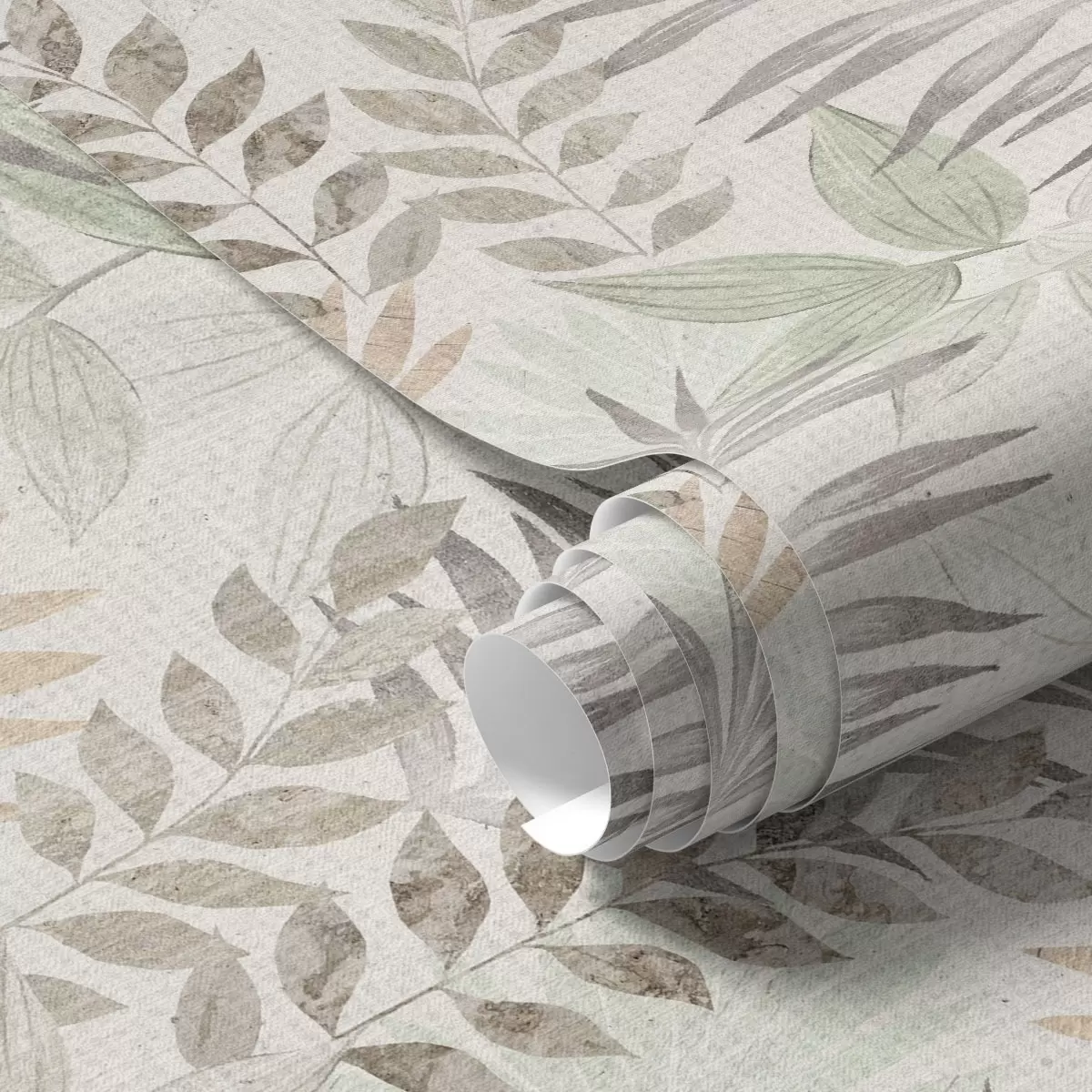 Тапет Пастелни тропически листа на светъл фон, фина текстура Nr. a00725