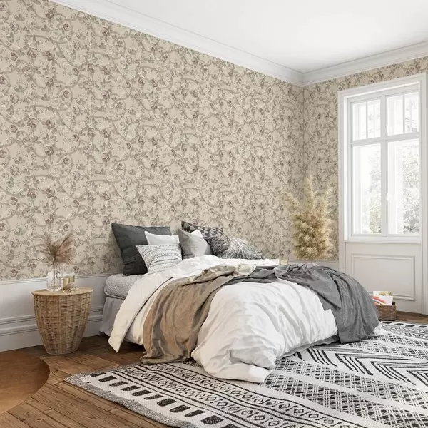 Тапет Рози със зелени листа на топла бежова основа Nr. a00729
