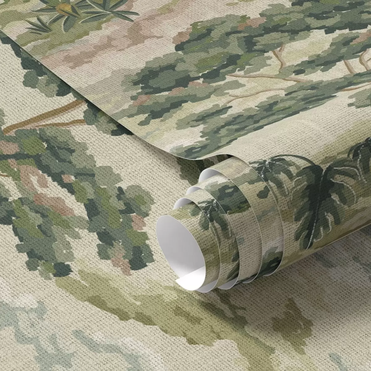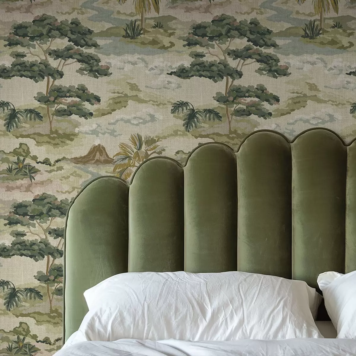 Тапет Пейзаж с река, дървета и палми в меки тонове Nr. a00736