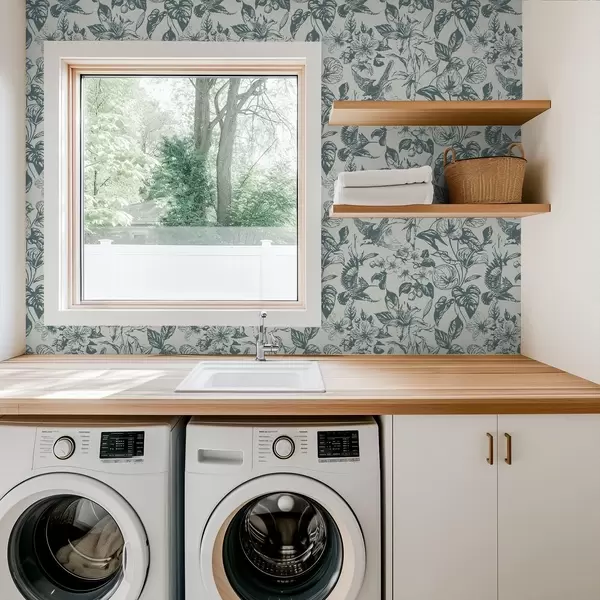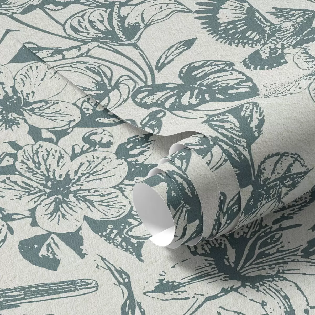 Тапет Монохромен флорален орнамент с птици Nr. a00737