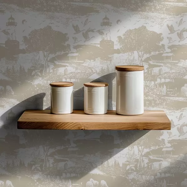 Тапет Сцена с фара, дървета и къщи в сиена Nr. a00739