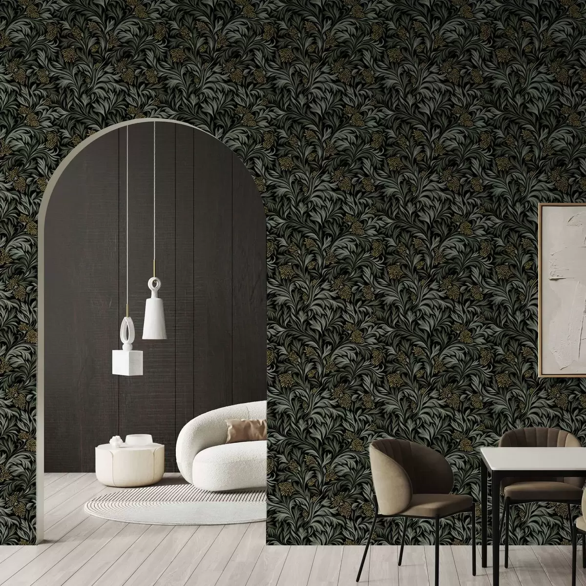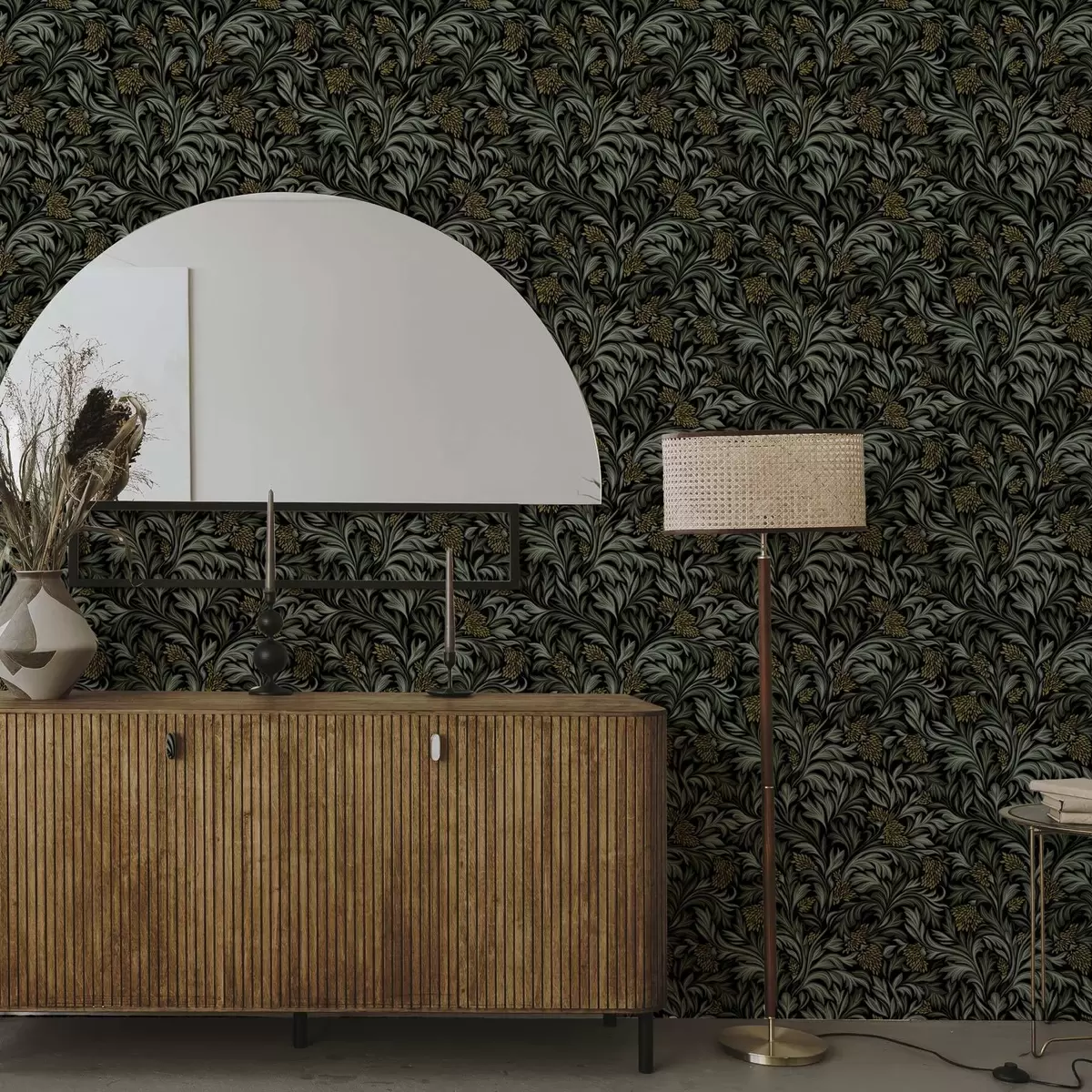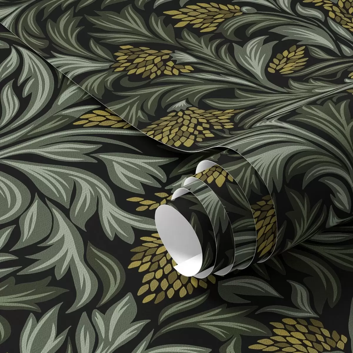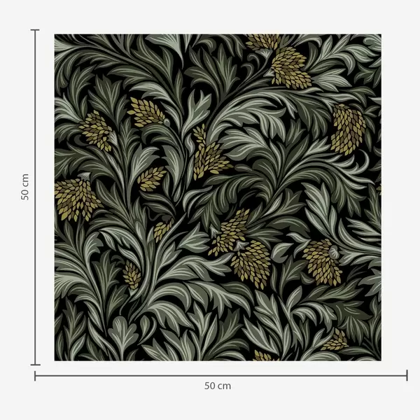 Тапет Тъмни акантови листа с жълти шишарки върху черно Nr. a00745