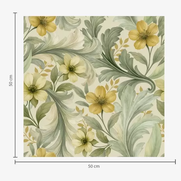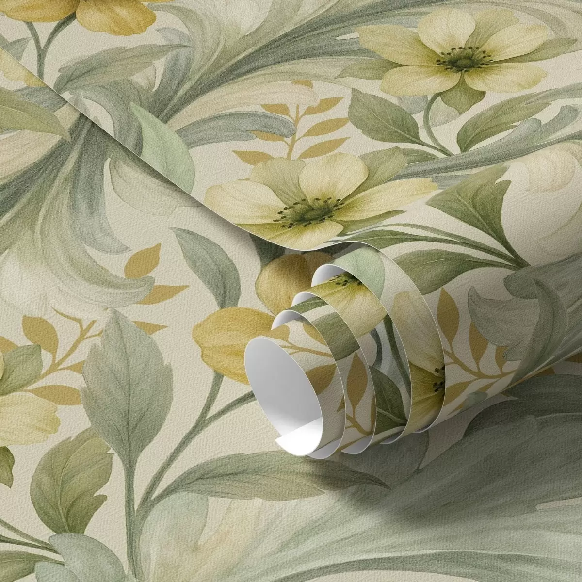 Тапет Акантусови спирали с цветя в зелени и жълти тонове Nr. a00749