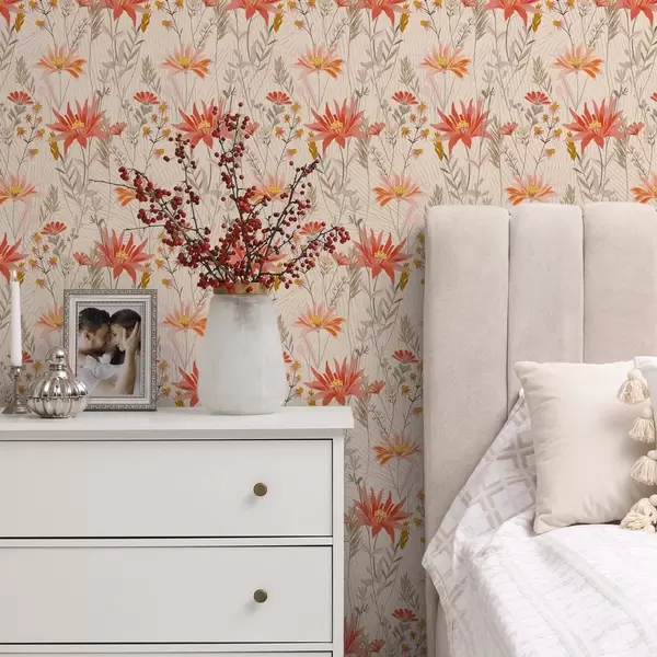 Тапет Диви цветя в топли тонове на бежов фон Nr. a00751