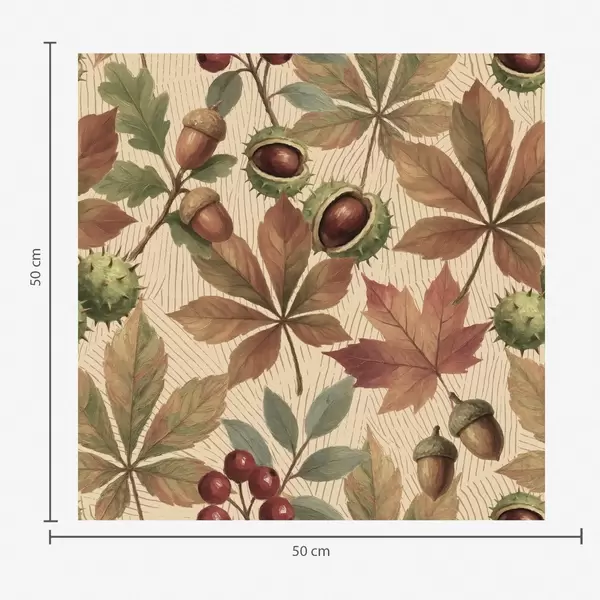 Тапет Есенни листа, жълъди и плодове на бежов фон Nr. a00754