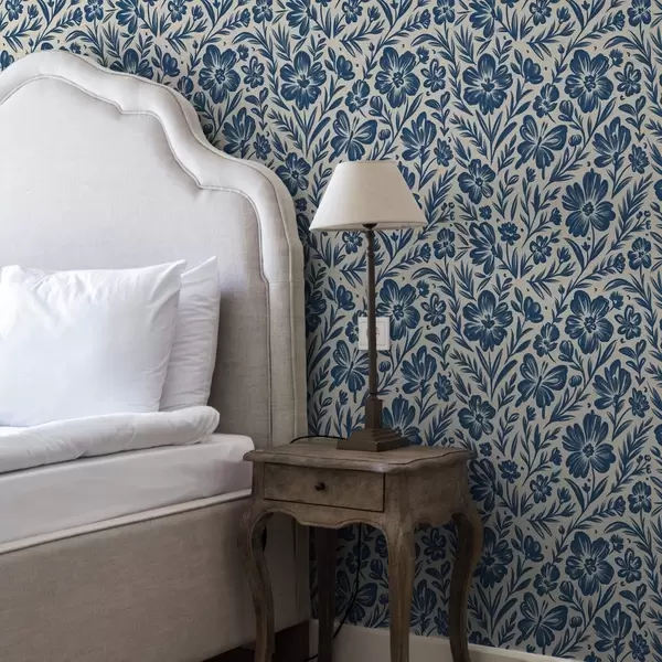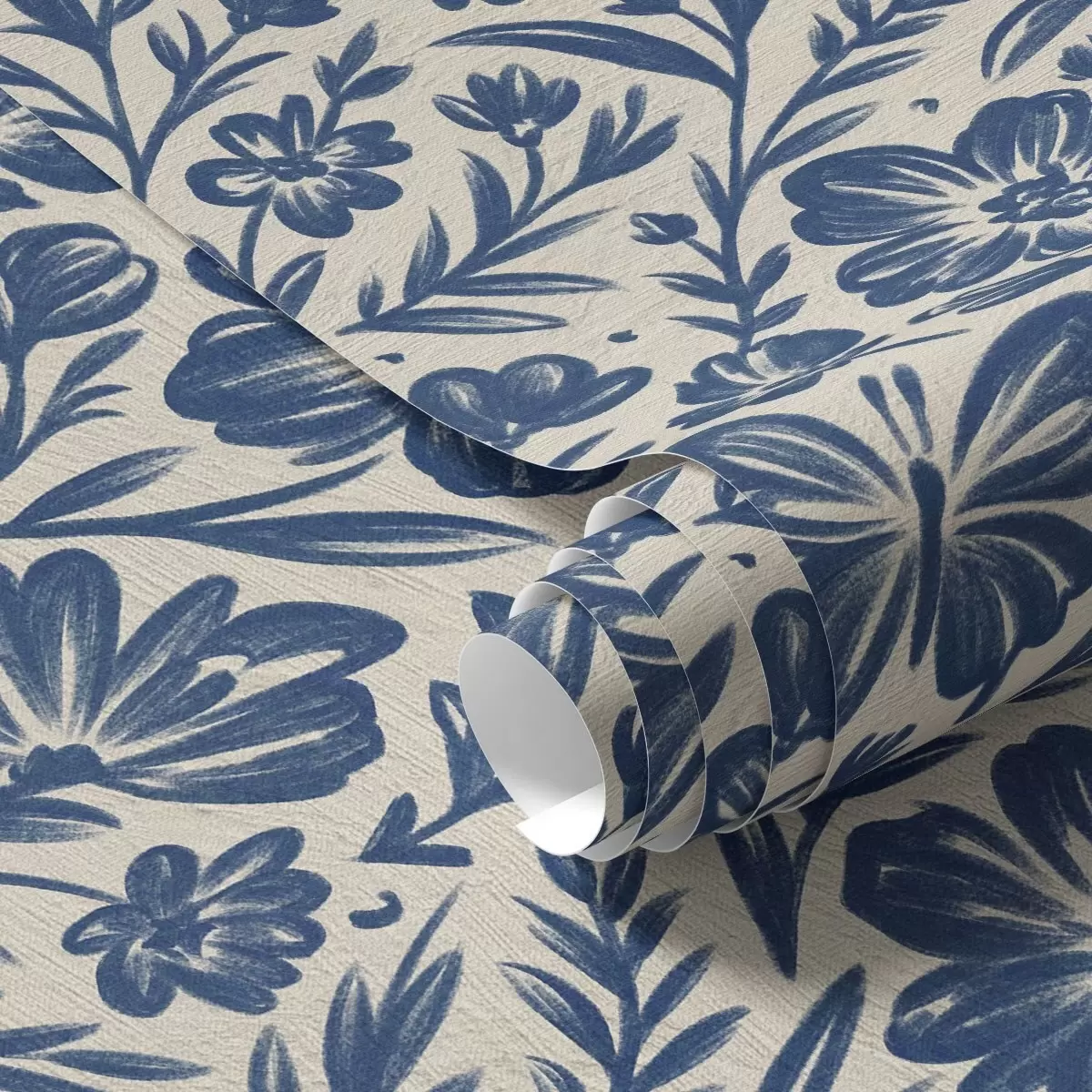 Тапет Синьо флорално орнамент с пеперуди Nr. a00758