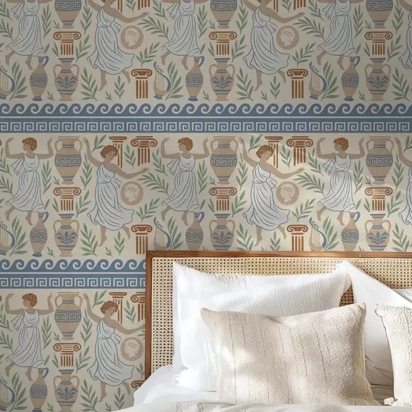 Тапети Древен гръцки орнамент с фигури, вази и колони a00768
