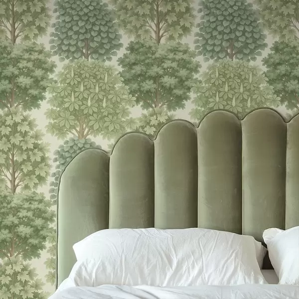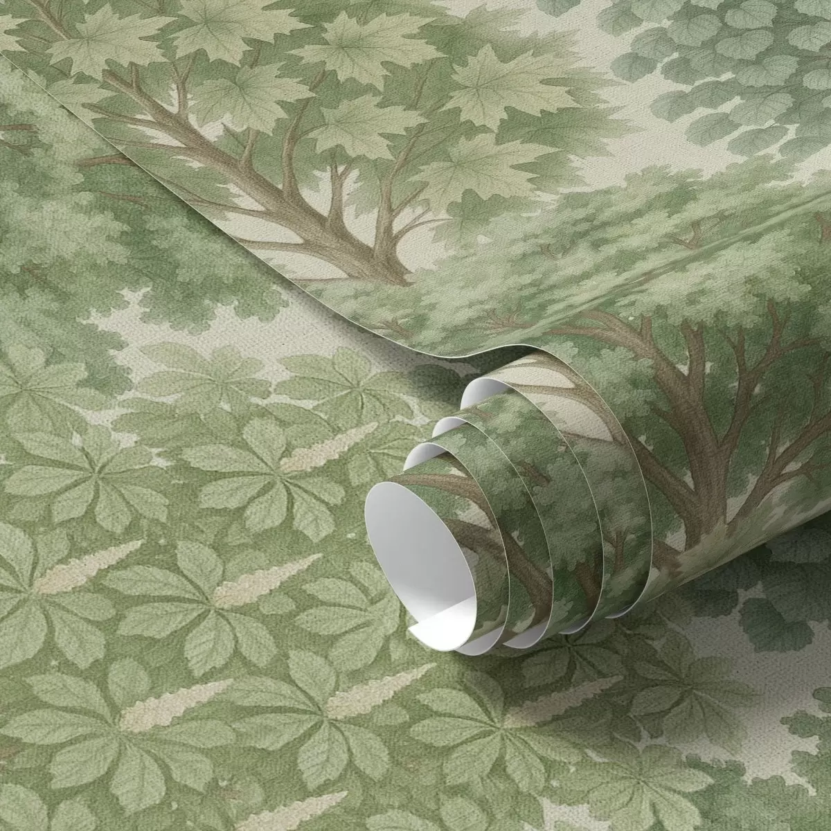 Тапет Дървесна градина в нежни зелени нюанси върху светъл фон Nr. a00775