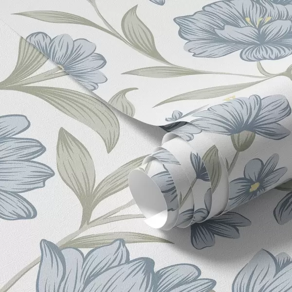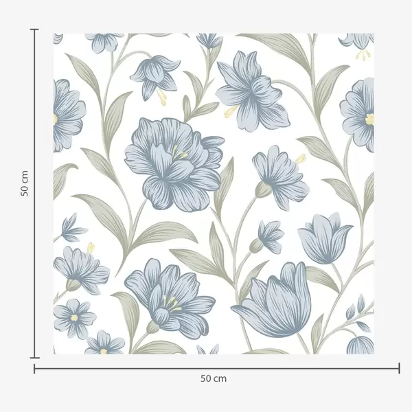 Тапет Прахни сини цветя с маслинови листа на бял фон Nr. a00780