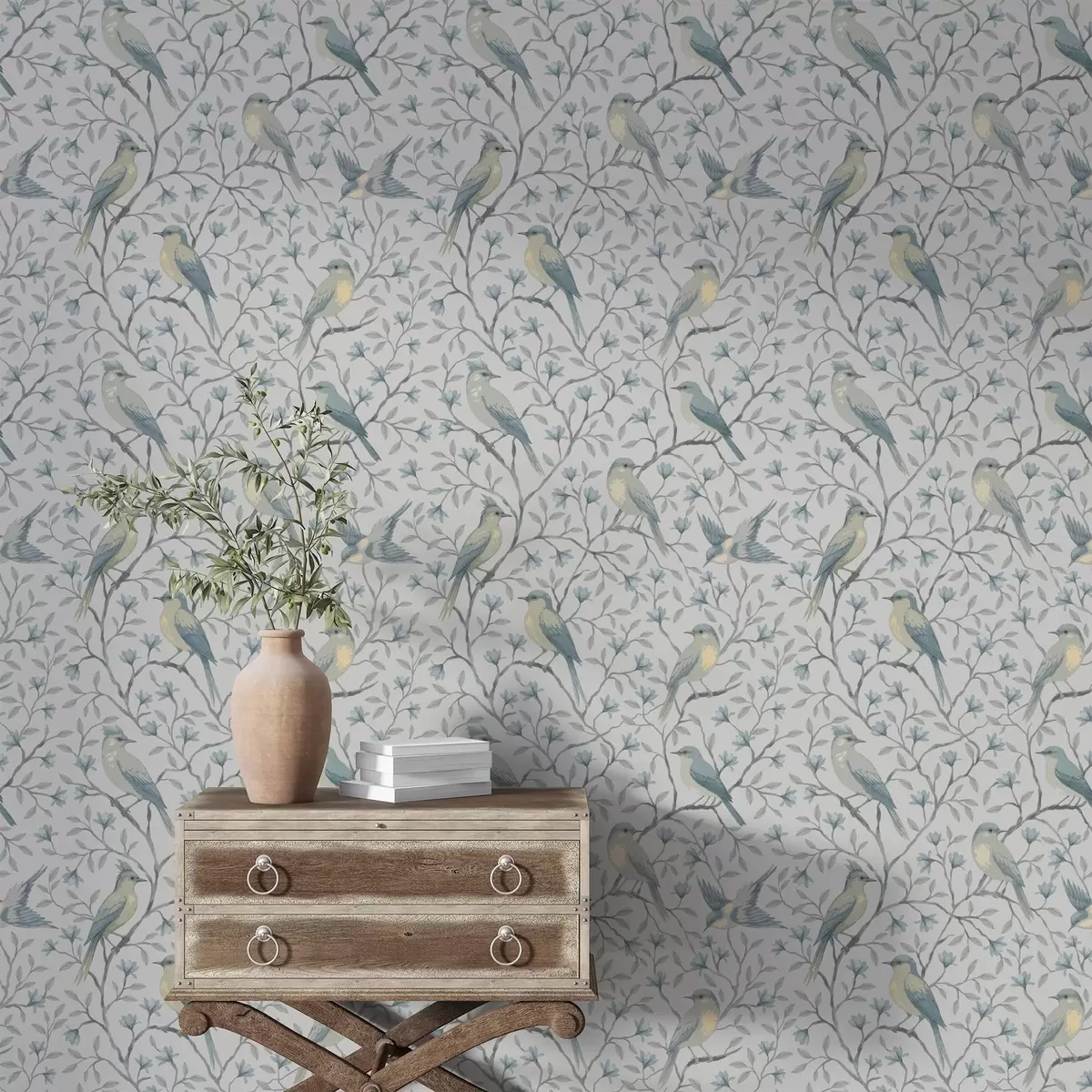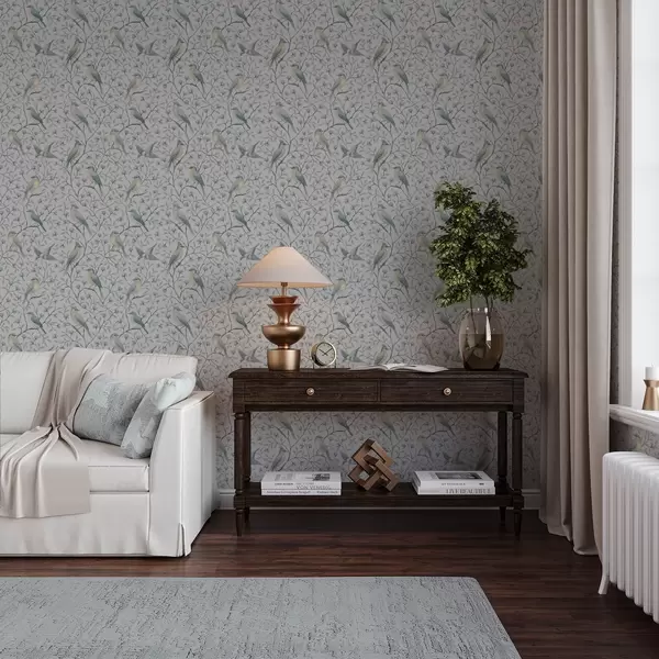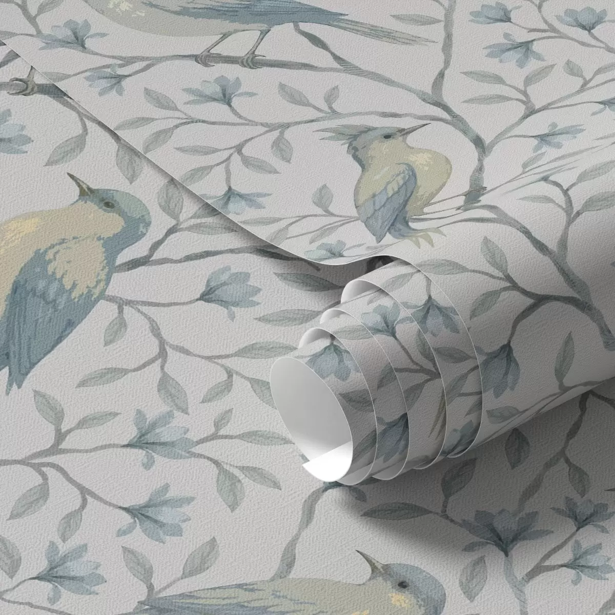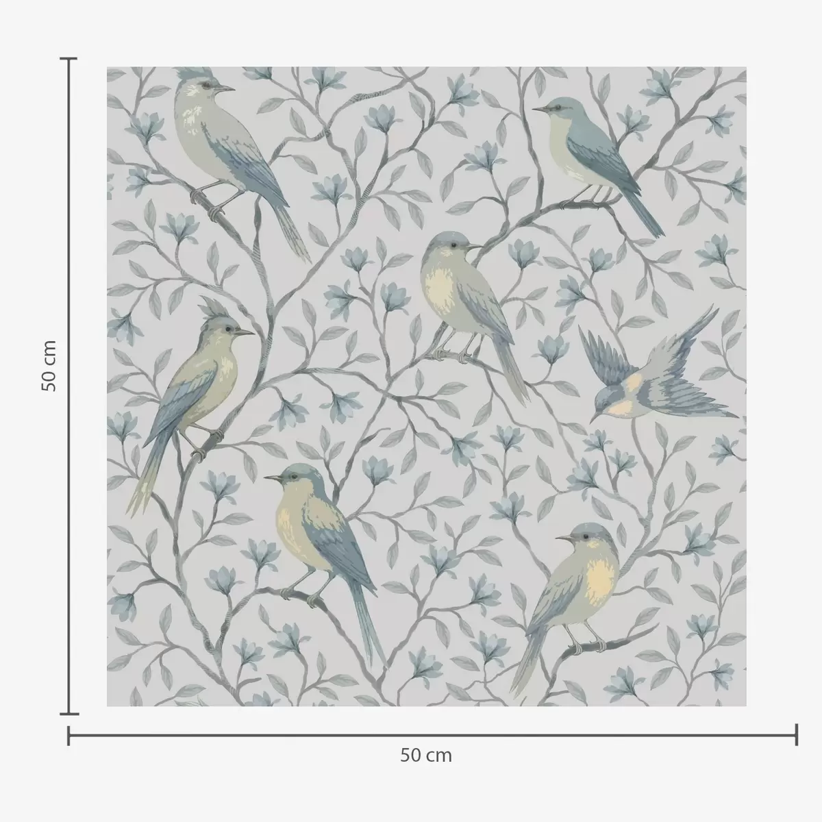 Тапет Птици на клони, сиво-синя гама Nr. a00782