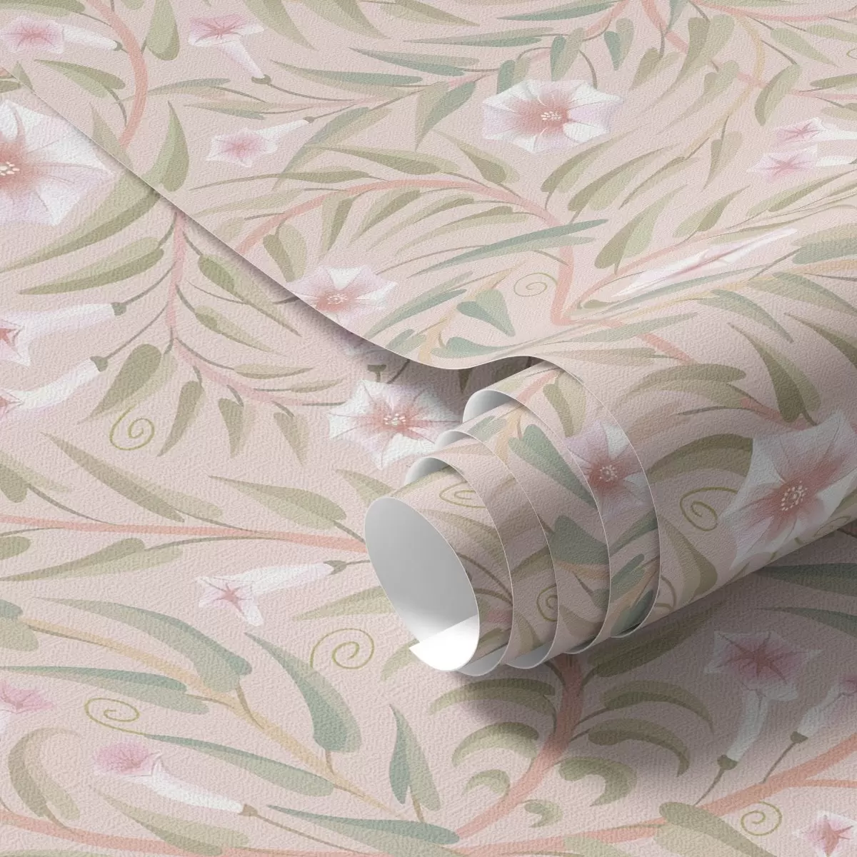 Тапет Нежни розови цветя и меки листа на пастелен фон Nr. a00788