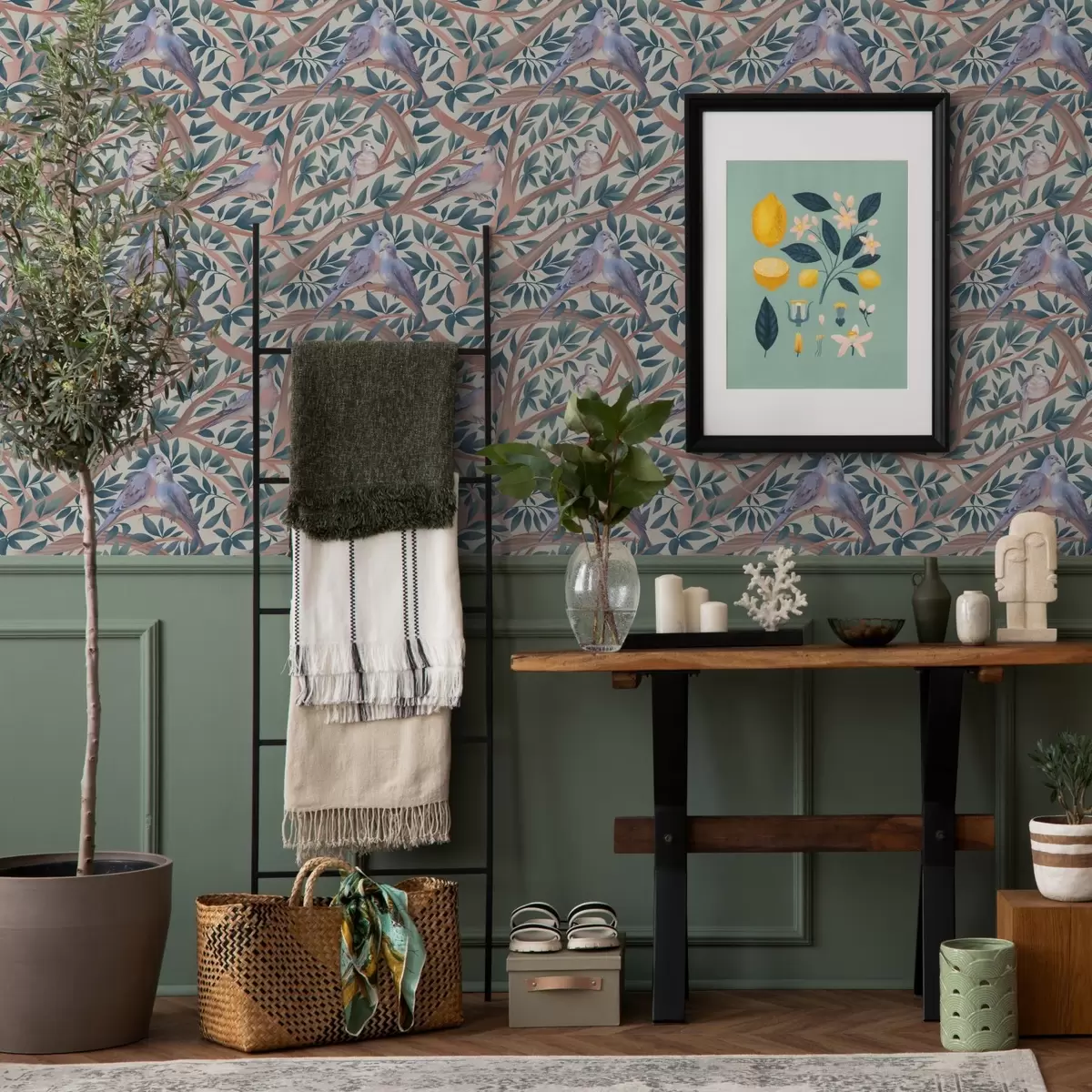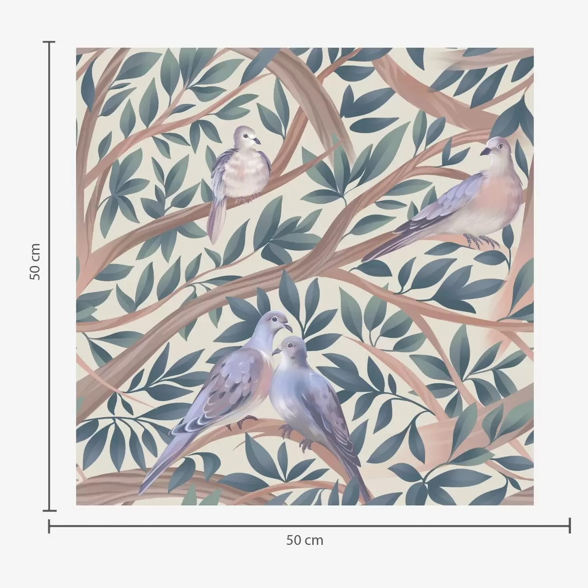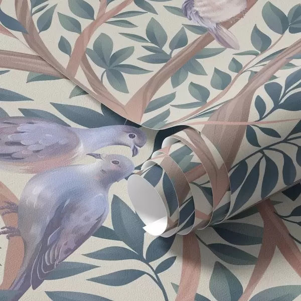 Тапет Гълъби сред клони и листа в мека пастелна палитра Nr. a00796