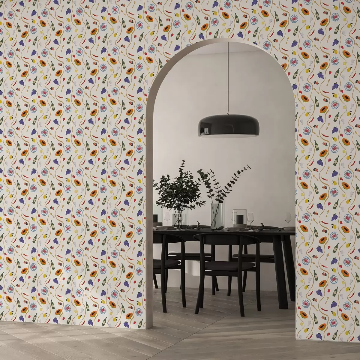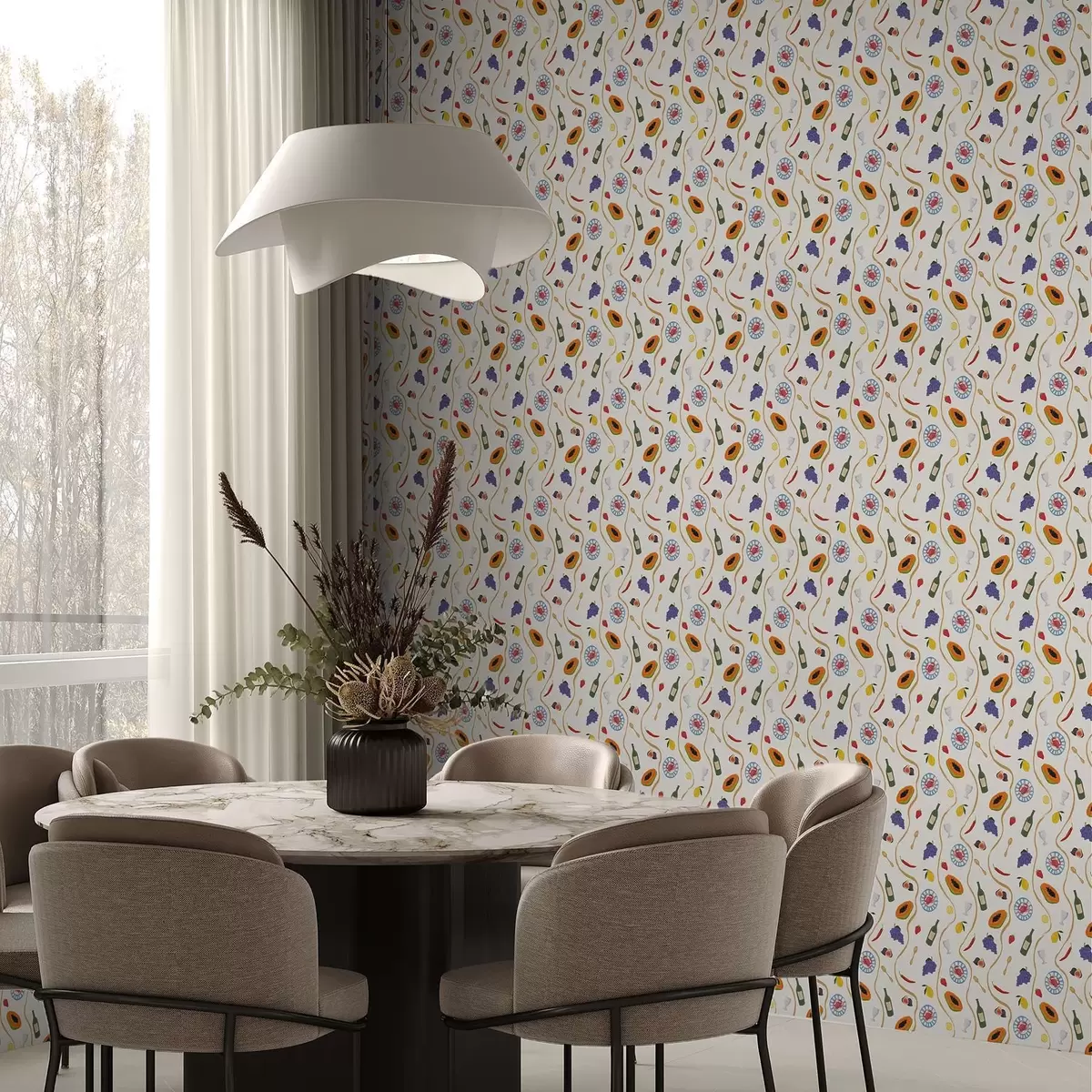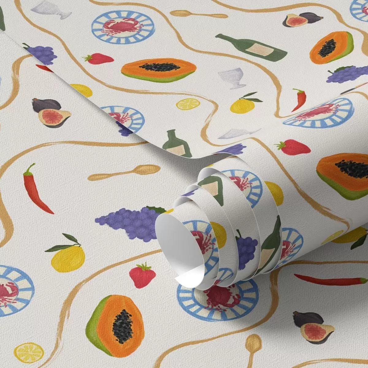 Тапет Бутилки, папая, лимони и подправки на светъл фон Nr. a00802