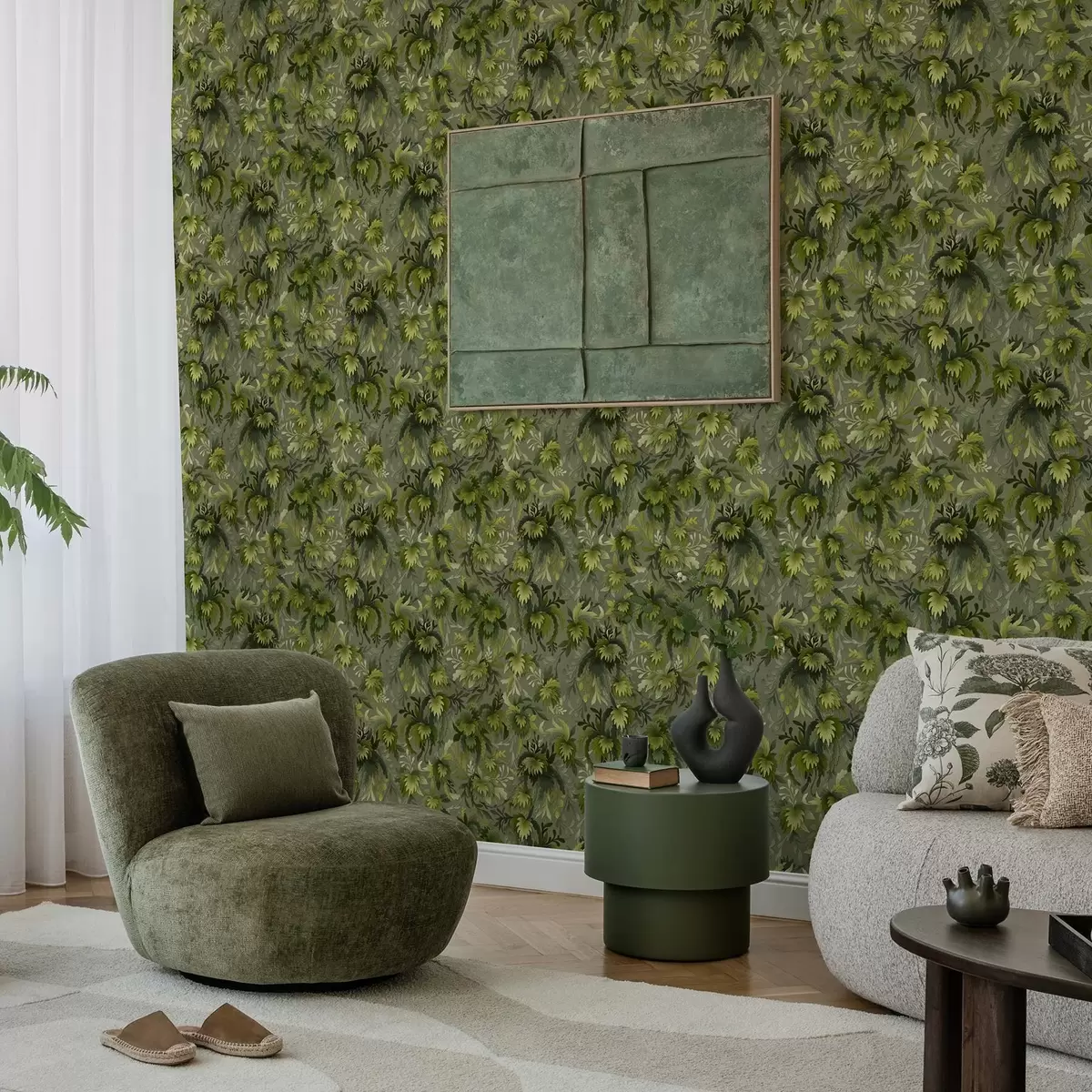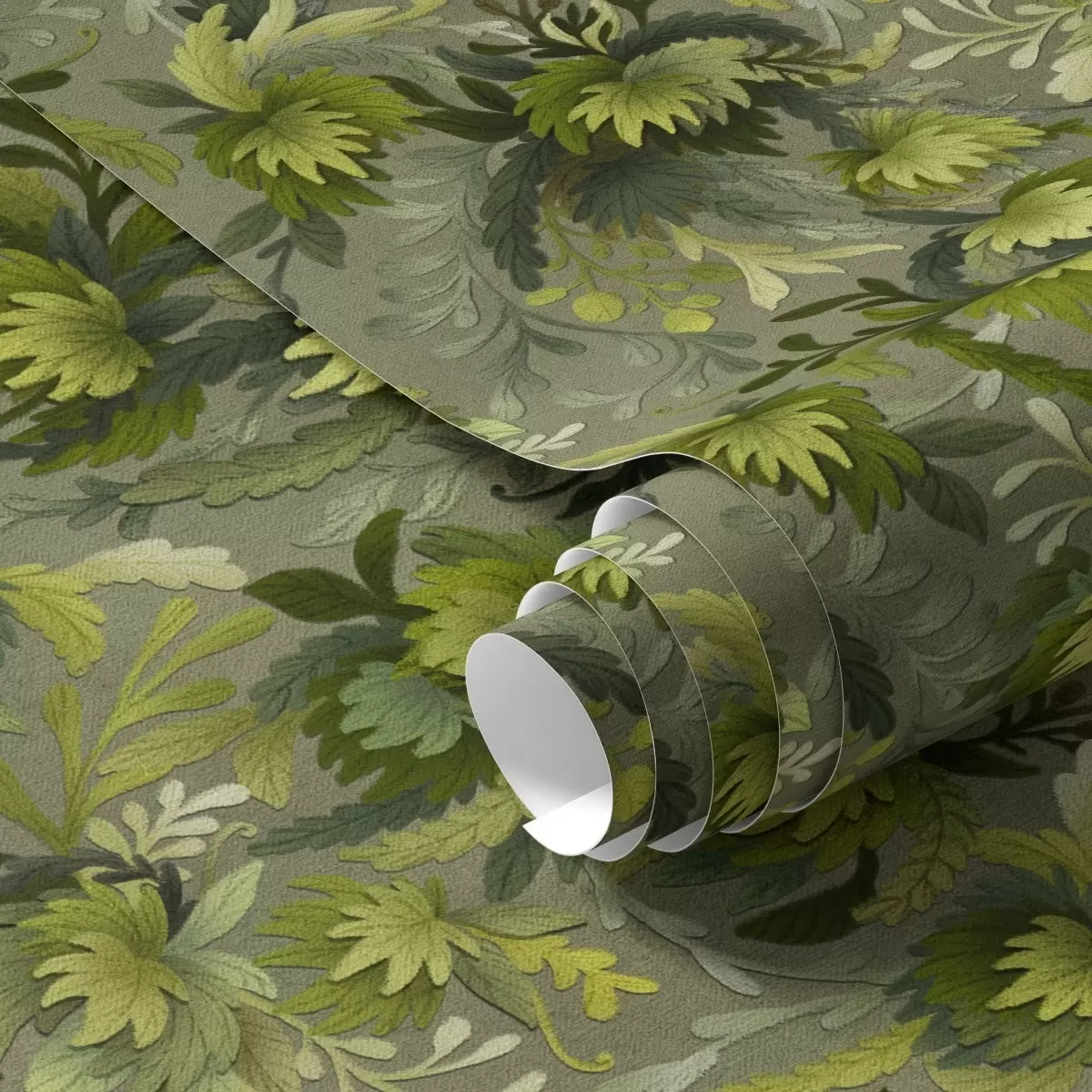 Тапет Гъста зелена листа на сиво-зелен фон Nr. a00805v1