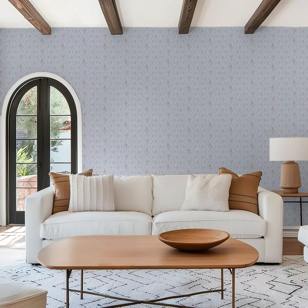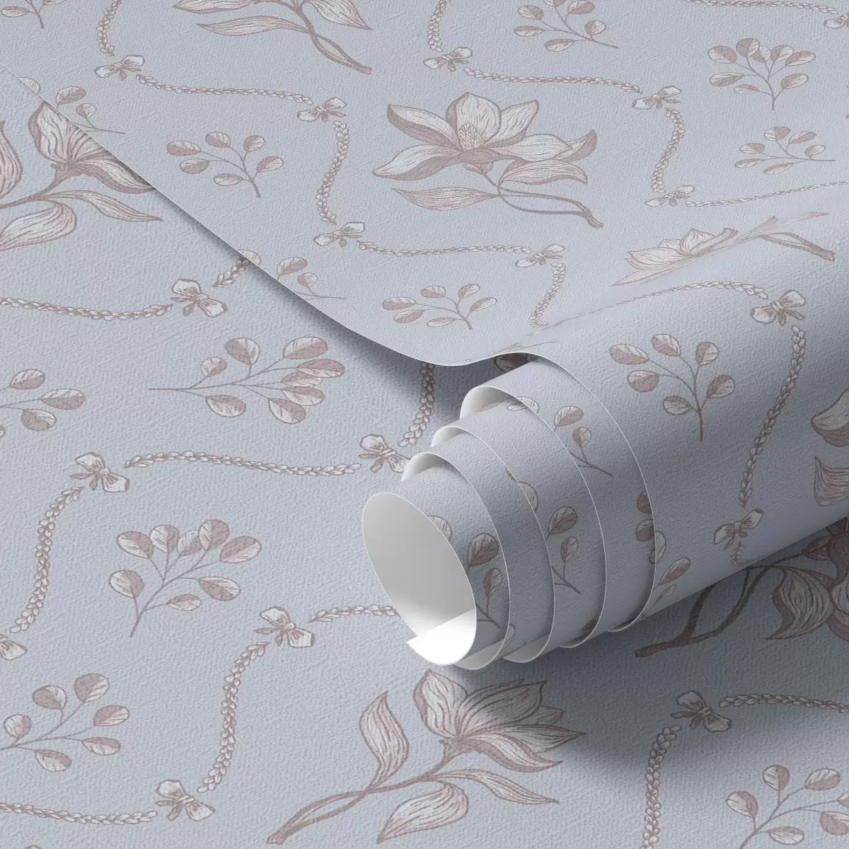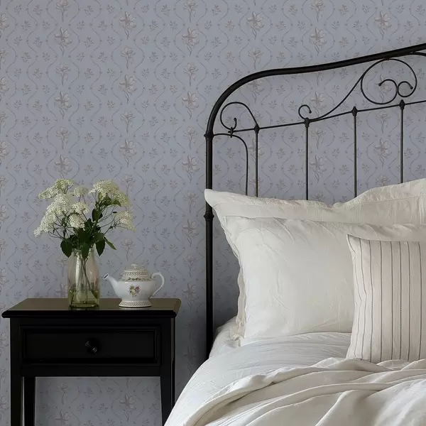 Тапет Малки цветя и панделки в бледосини тонове Nr. a00808v1